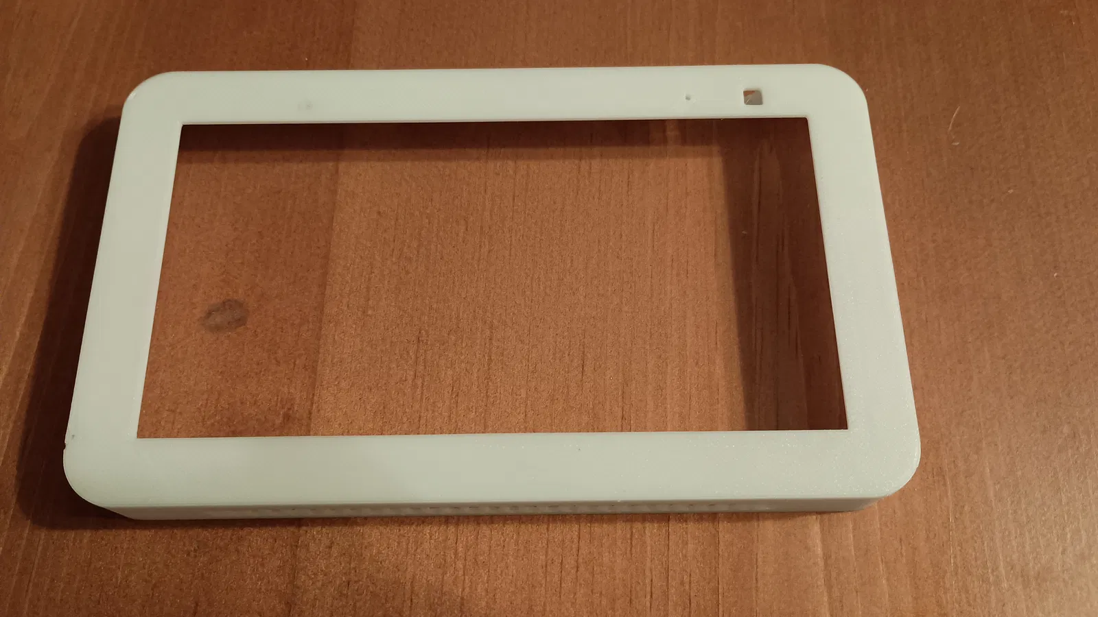 Một cái ốp để trang trí cho Echo Show mà không cần dán hay làm gì vĩnh viễn. Mình thì in bằng PLA màu trắng rồi sơn giả vân gỗ.
