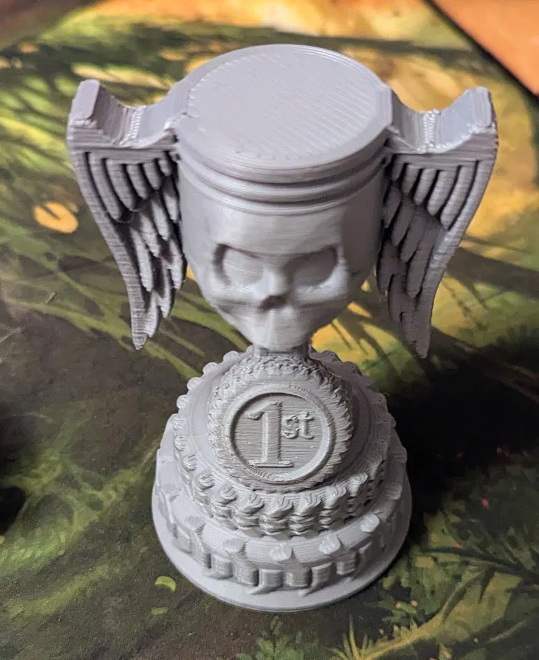 Chơi một ván Gaslands và thấy mình như nhà vô địch vì vượt qua được cổng thứ hai mà tất cả xe vẫn còn nguyên, chưa nổ tung cái nào? Vậy thì có ngay cái cúp này dành cho bạn!