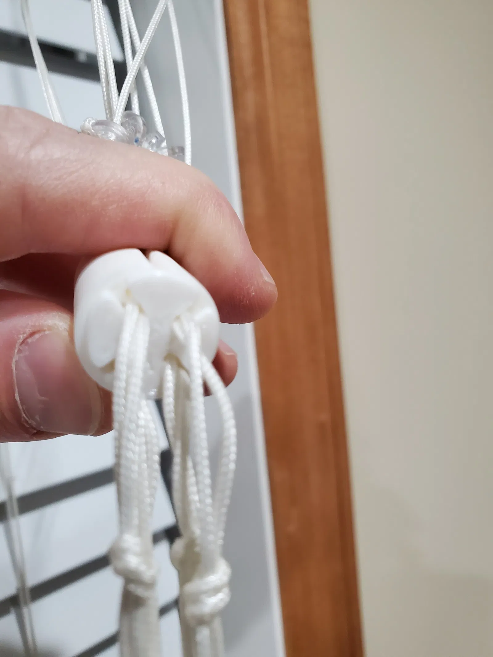 Chúng tôi có rèm Levolor trong nhà của chúng tôi và nếu bạn có rèm, bạn sẽ biết rằng chúng càng lớn thì chúng càng có nhiều chuỗi. Một số rèm của chúng tôi có 8 chuỗi rút riêng biệt! Hoặc khi bạn cố gắng và kéo rèm lên, bạn phải đảm bảo rằng bạn lấy mỗi một trong số 8 lần kéo hoặc người mù không kéo đều. Các chuỗi vẽ trên rèm được tách thành 4 cặp, mỗi cặp được đặt trong một khe trên Detangler. Có 2 nắp cho Detangler chụp trong các khe và có thể được loại bỏ với một lực nhỏ. Bạn muốn đặt máy phát phá cao nhất có thể khi rèm của bạn hoàn toàn bị rút xuống.