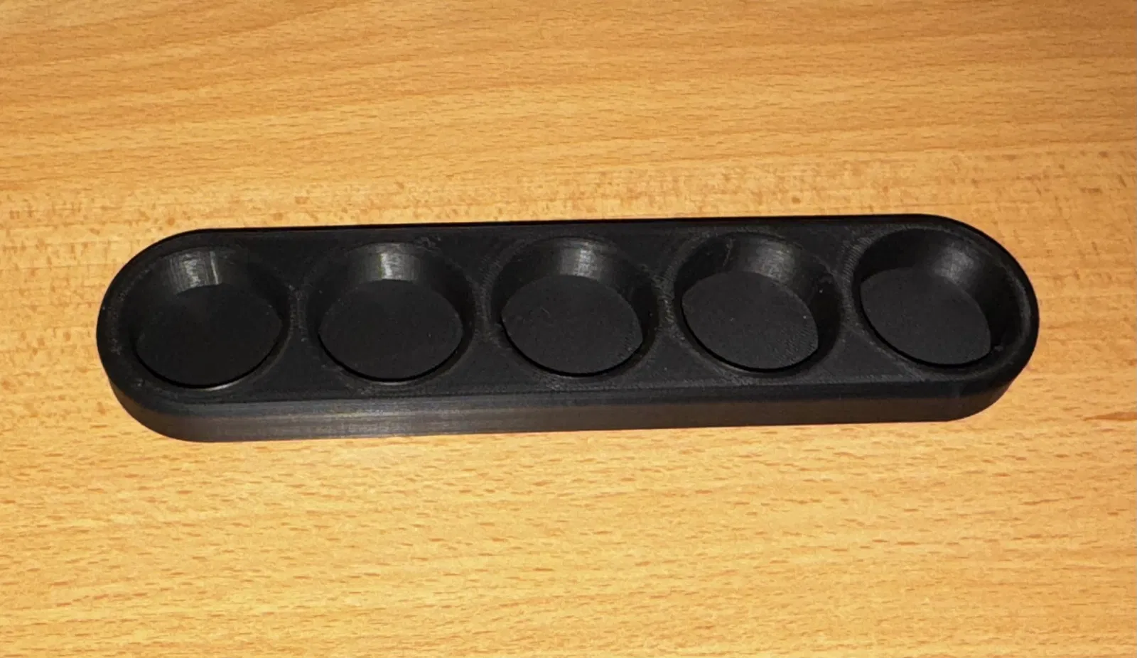 Đây là một cái rack đơn giản để đỡ tối đa 5 chai/lọ thuốc. Có 2 phiên bản: một bản thiết kế cho chai đường kính 28mm, và một bản cho 35mm. Lưu ý là khoảng cách giữa các chai có thể hơi sát, nên nếu nắp chai quá to/bè thì có thể bị cấn.