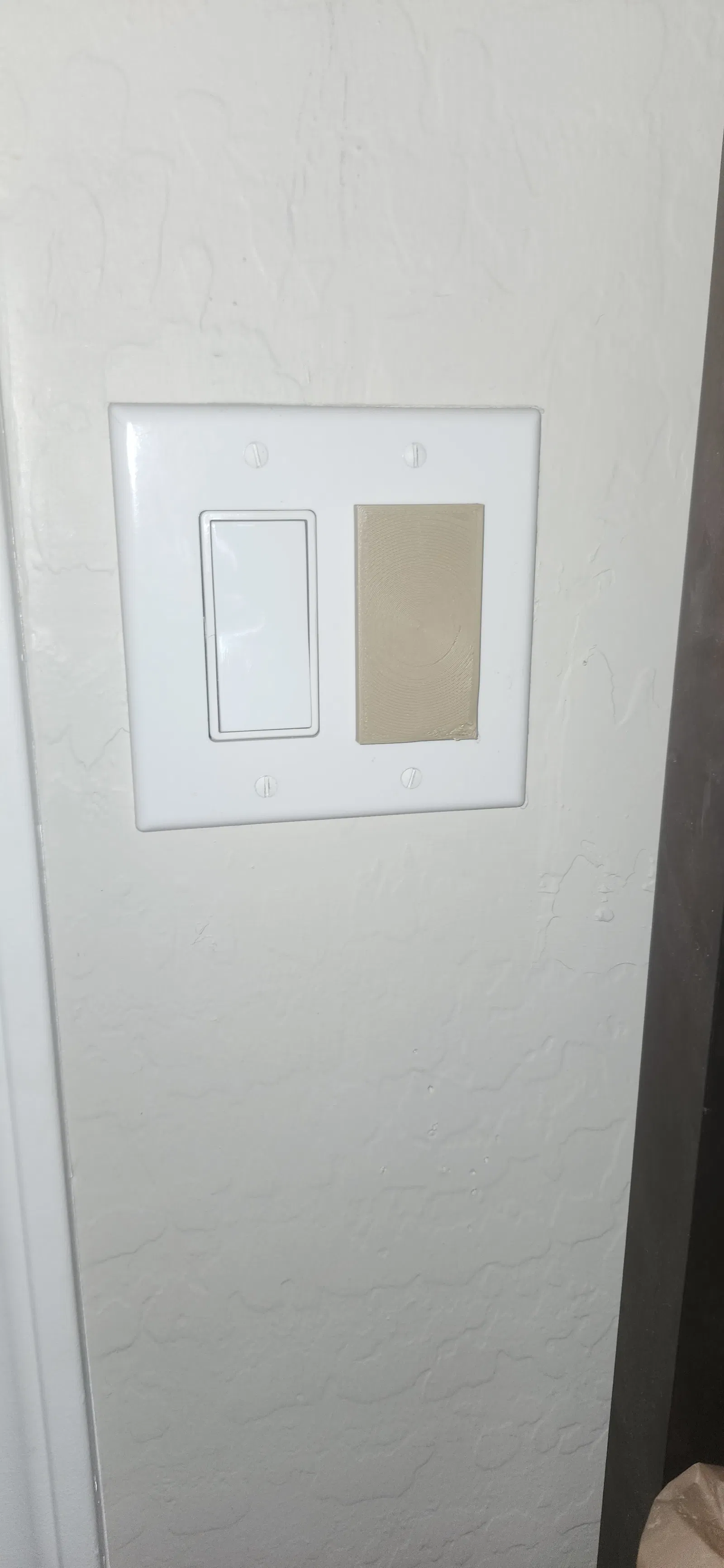 Mẫu ốp che cho công tắc đèn Lutron, bấm snap vào công tắc chữ nhật để giữ công tắc luôn bật hoặc luôn tắt theo nhu cầu. Thiết kế có phần nối mỏng giúp bám giữa cover plate và viền công tắc, đứng chắc hơn.