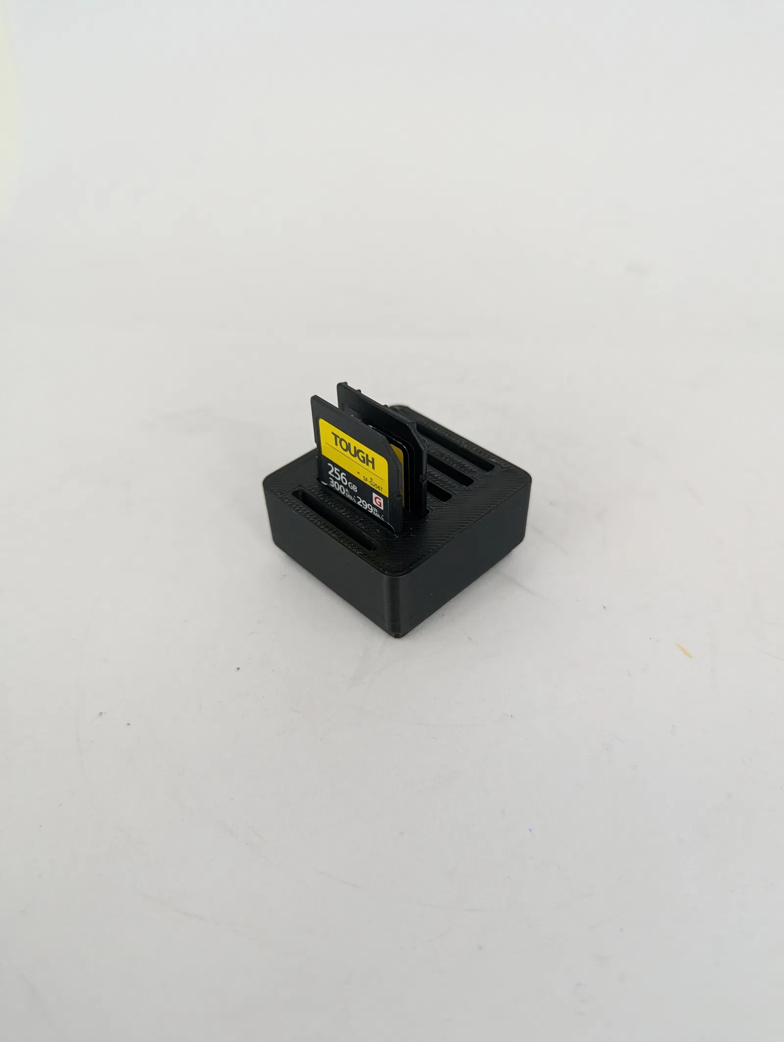 Mẫu Gridfinity SD Card holder dạng khay 1x1, chứa vừa 6 thẻ SD. Phù hợp để sắp xếp thẻ gọn gàng trong ngăn kéo, hộp đồ nhiếp ảnh hoặc hệ Gridfinity, dễ in 3D và tiện lấy ra dùng.