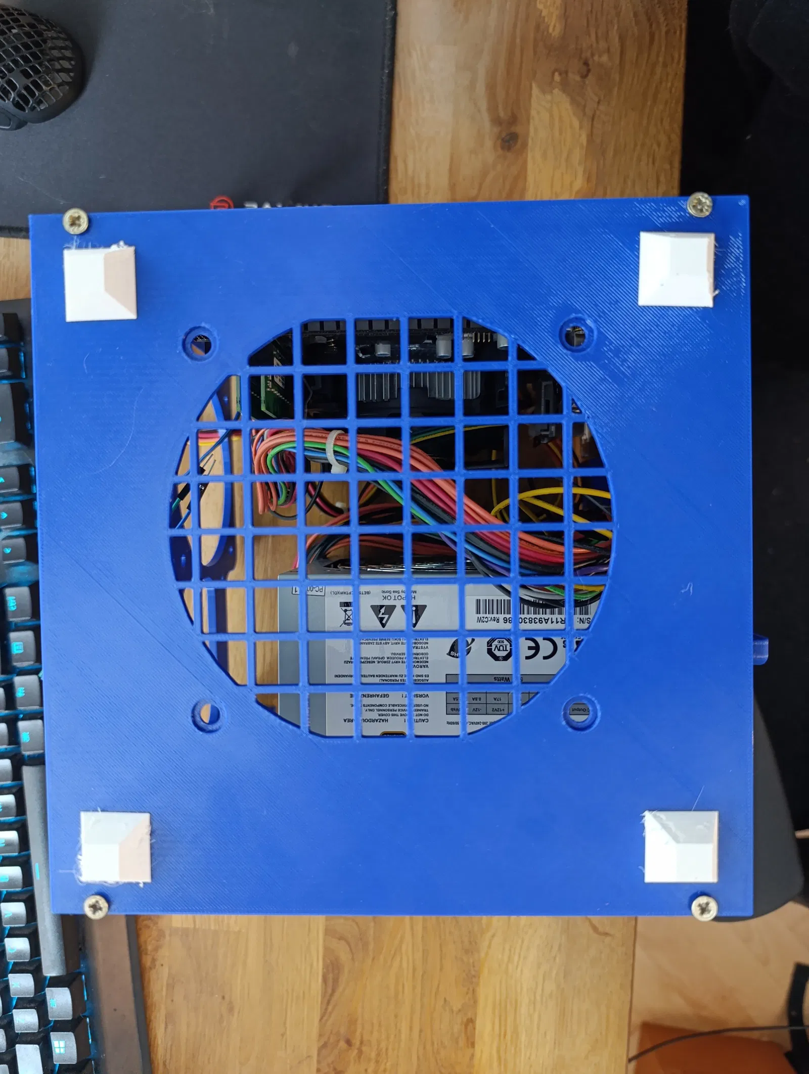 Tấm back plate cho ATX PSU – có 2 vị trí gắn PSU để lưu thông không khí. Tấm đáy được chỉnh cho quạt 120mm. Chân cao su TPU + standoff.