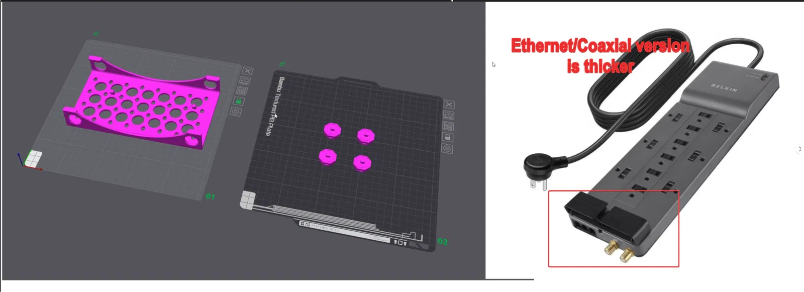 Bản thiết kế được cập nhật cho biến thể Belkin surge protector 12 cổng có thêm pass-thru Ethernet và coaxial. Do thân ổ dày hơn nên đã chỉnh lại kích thước/độ hở để lắp vừa trên multiboard.