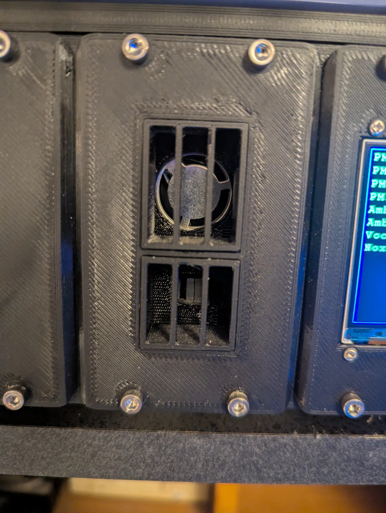Printing: Mình in với mặt module LabStack úp xuống và phần ngàm/giá gắn SEN55 hướng lên trên. Mình bật supports ở mọi nơi, nên lúc gỡ support thì khá là mệt. In trên Core One với profile 0.25 Speed dùng Prusament PETG. Mình cũng làm thêm 2 mẫu grille riêng, bạn có thể in rồi ép (friction fit) vào lỗ hút và lỗ xả để nhìn gọn hơn và giữ cho khu vực đó thông thoáng.