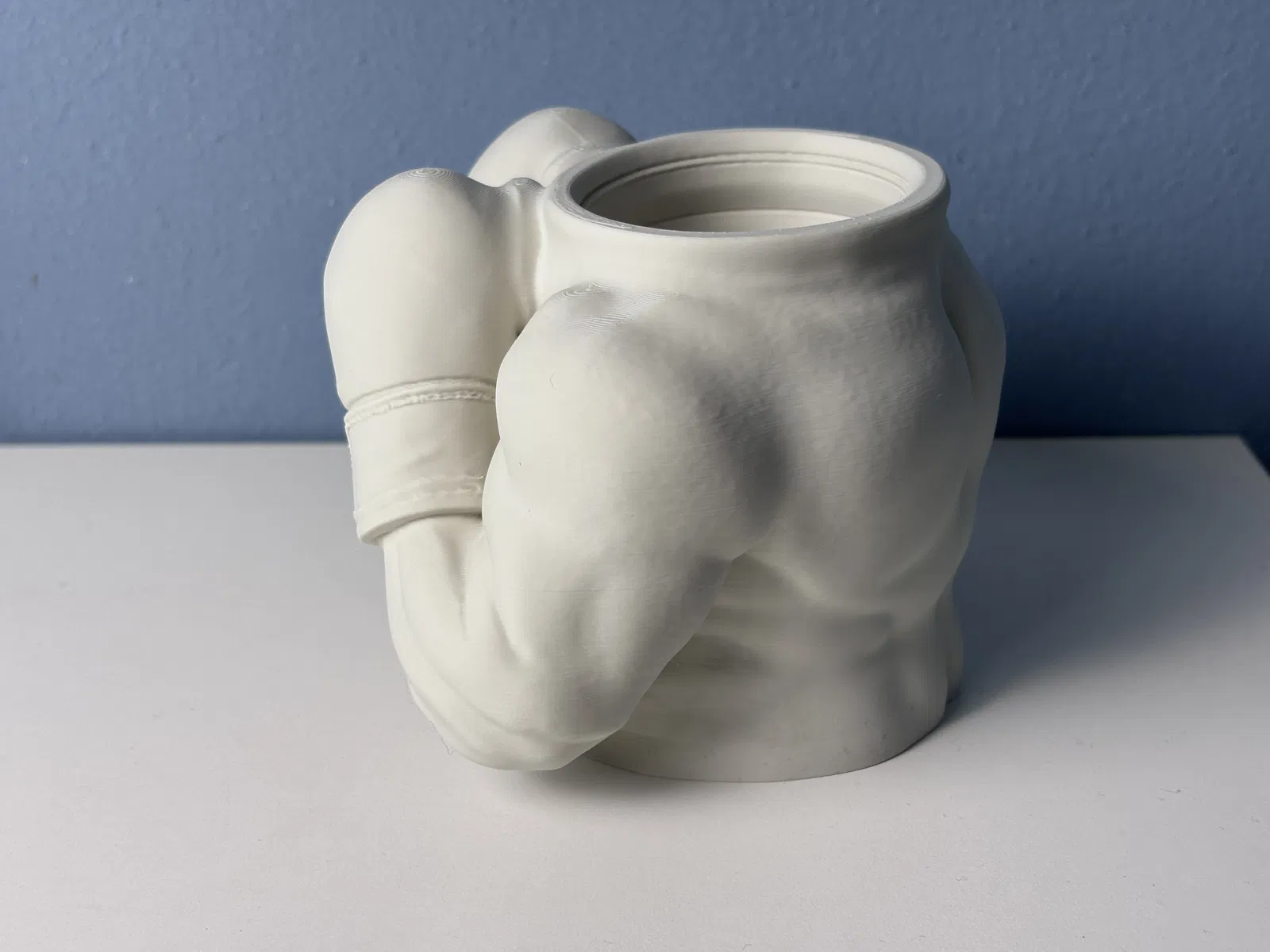 The Champ là mẫu pen holder dạng tượng bán thân võ sĩ boxing đang thủ thế, nhìn lực và rất “cơ bắp”. In nhanh, ít cần supports, hợp để bàn làm việc: đựng bút, bút chì hay thẻ gym. Khuyên dùng Matte White PLA.