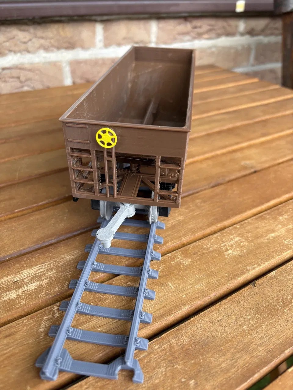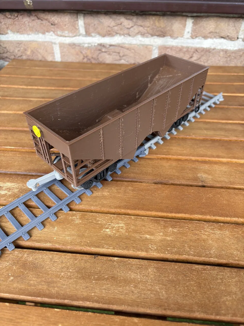 Mẫu xe toa 2 Bay Hopper Car cho O Gauge in 3D hoàn toàn, phù hợp chở than và hàng rời trên layout. Hầu hết chi tiết đều in được, kể cả wheelsets dùng ball bearings cho vận hành êm, mượt và ổn định.
