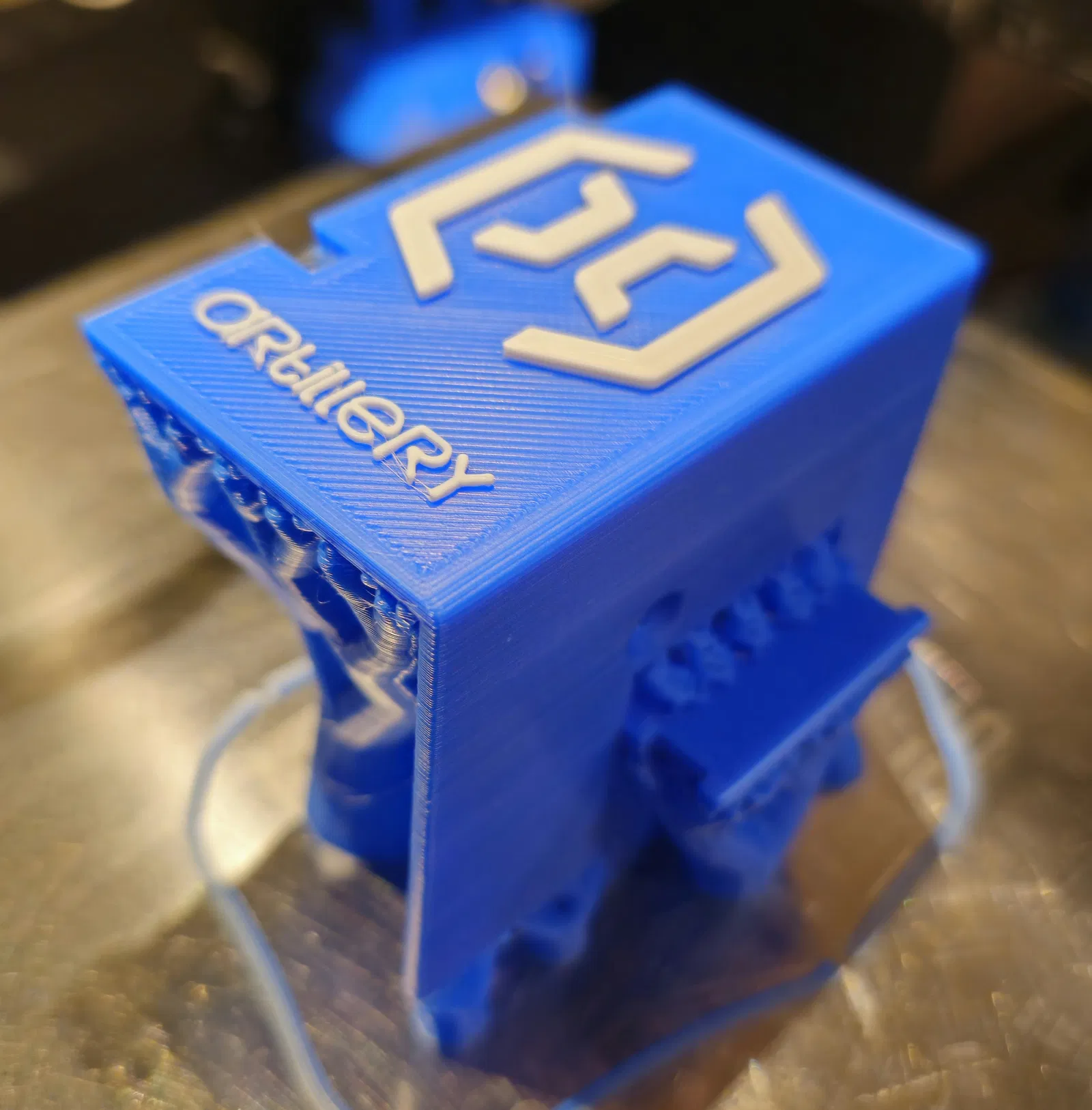 Model được đặt hướng với logo quay lên trên, giúp bạn đổi filament giữa chừng khi đang in để làm logo ra màu khác. Chi tiết cần supports.