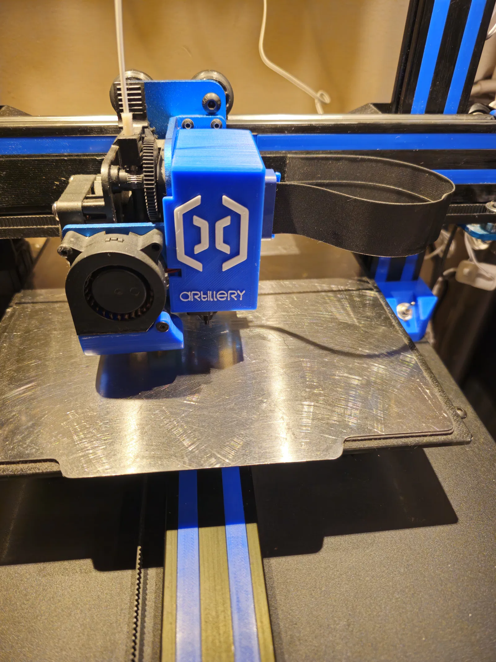 Ốp mặt trước extruder cho Artillery Genius Pro, remix từ thiết kế gốc của MMAleix. Giữ nguyên kích thước và khớp lắp, thêm logo Artillery dạng nổi. Đặt logo hướng lên để đổi filament giữa chừng in; cần supports.