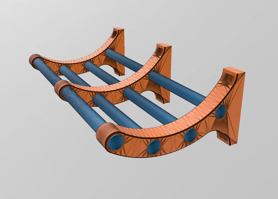 Kệ treo tường dễ in để cất băng keo đủ mọi kích cỡ, kể cả cuộn nhỏ khi gần hết. Dùng dowel 5–15 mm (gỗ/nhựa/carbon fiber). Có thể lắp nhiều module cùng dowel để làm thanh dài và chắc hơn.