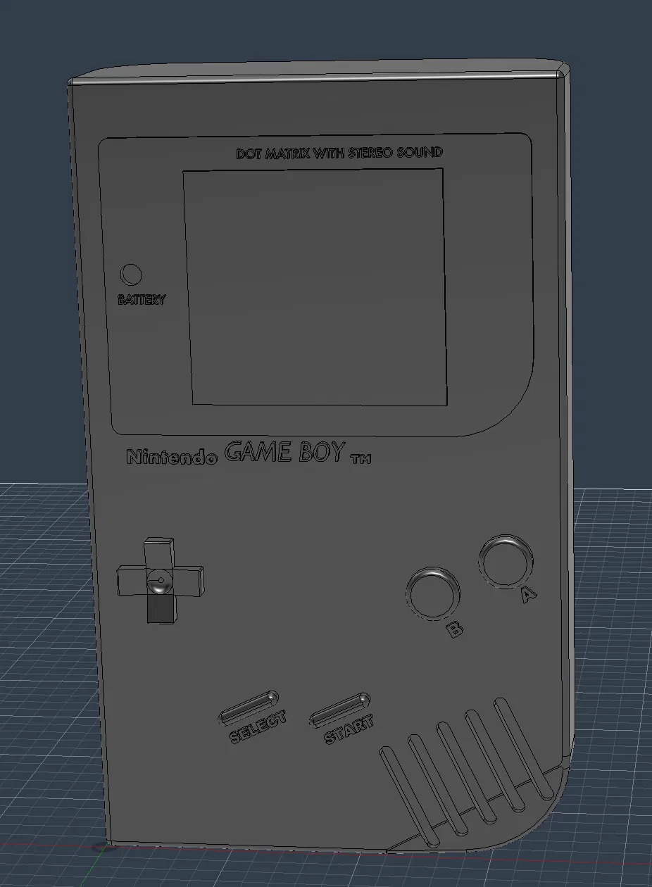Mẫu mô hình Game Boy nguyên bản của Nintendo. Tuy nhiên, đa số kích thước và chi tiết chưa thật sự chính xác hoàn toàn.