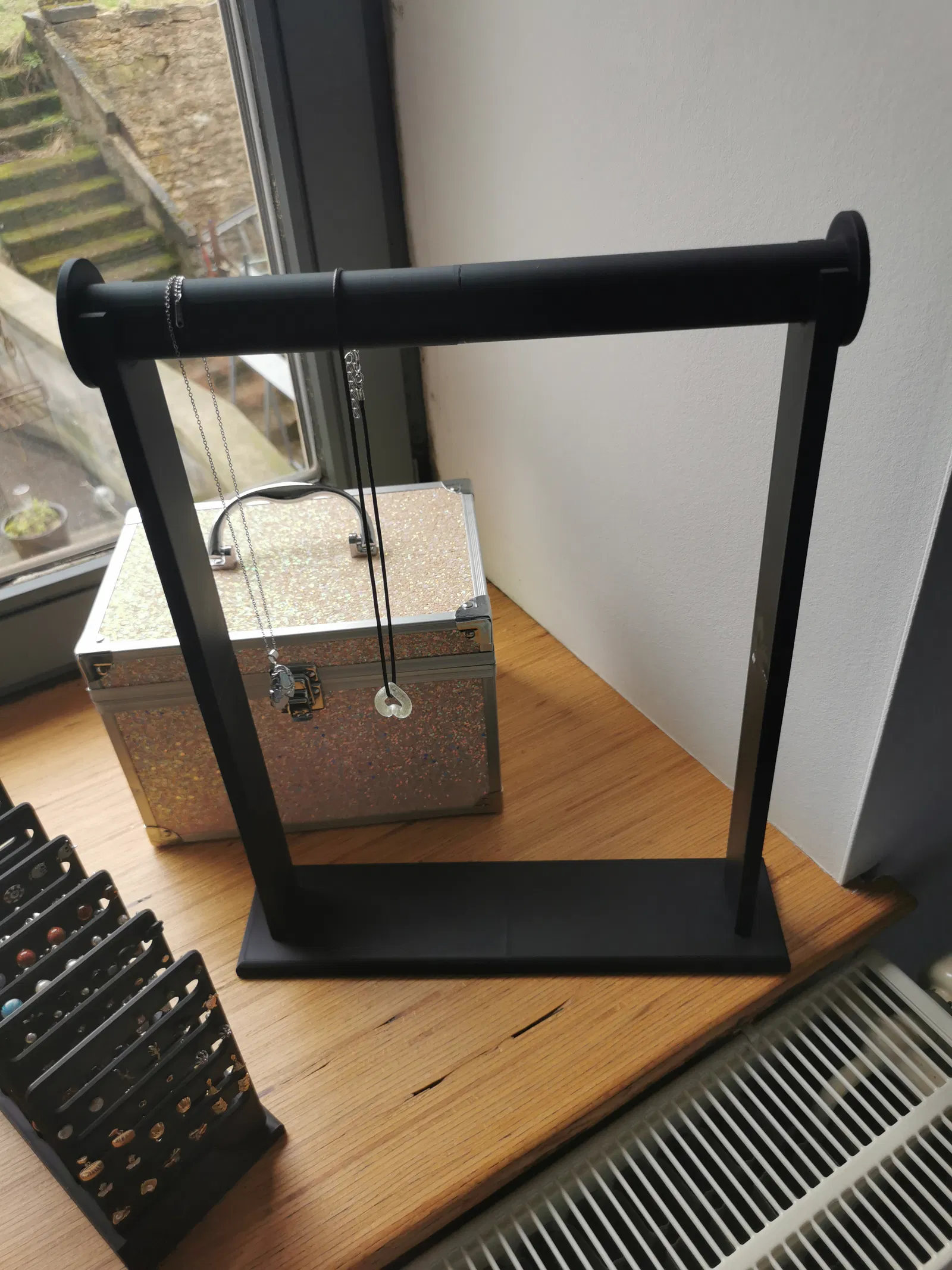 Giá treo dây chuyền/trang sức cỡ lớn, cao 40 cm, phù hợp cả dây chuyền dài. Lắp ráp các bộ phận bằng một ít keo dán nhựa giữa các chi tiết. In xong nhìn gọn gàng, tiện trưng bày.