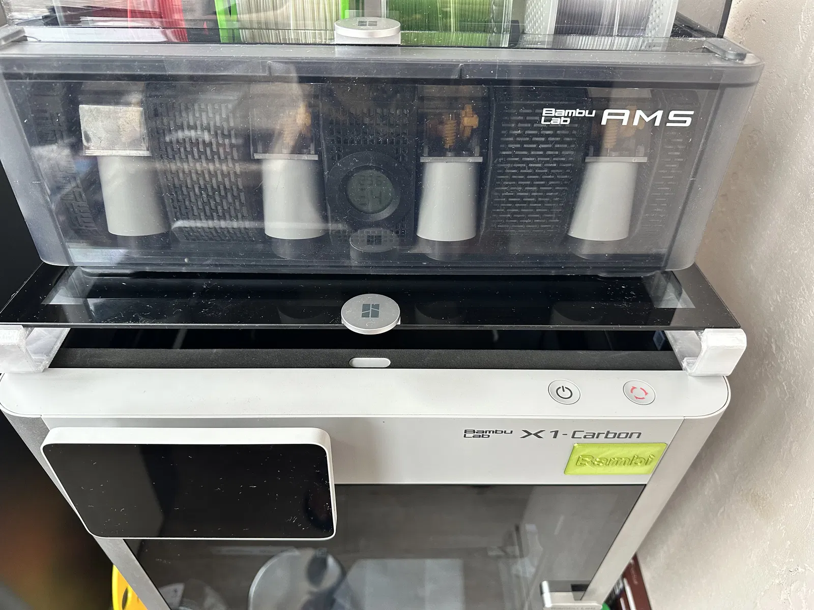 Miếng kê nâng kính nóc (glass lifters) cho Bambu Lab X1/P1 giúp tạo khe hở thông gió khi vẫn đóng cửa trước. File chia theo thư mục theo độ cao khe hở; bản ngắn đặt dưới tay nắm, không để AMS trên nóc.