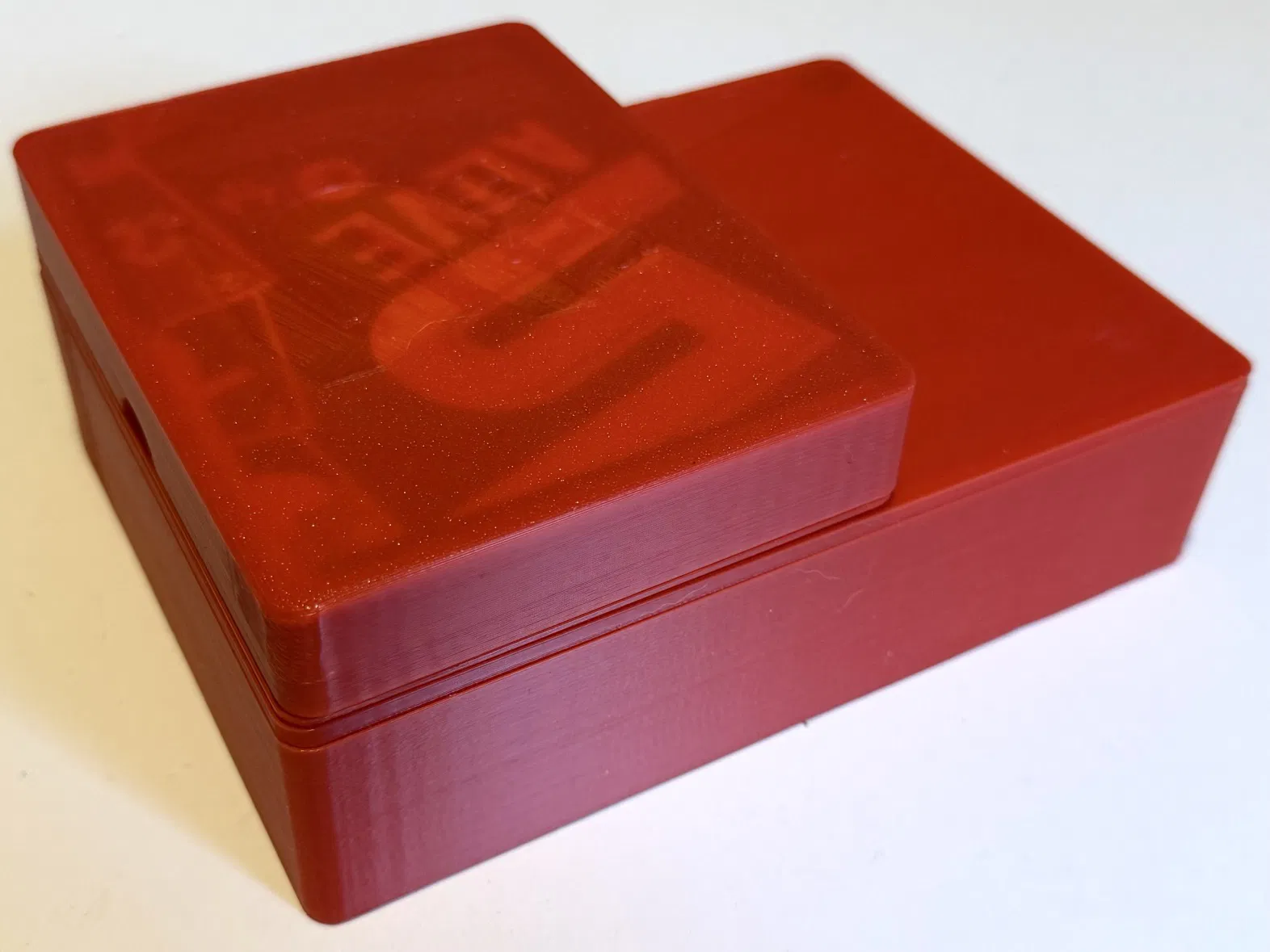 Mình cũng làm thêm một hộp đựng để cất chúng; hộp dùng 2 nam châm đường kính 10mm (độ sâu 2mm) để giữ nắp. Ngoài ra mình canh kích thước để khi xếp chồng thì vừa đẹp với đặt ở trên.