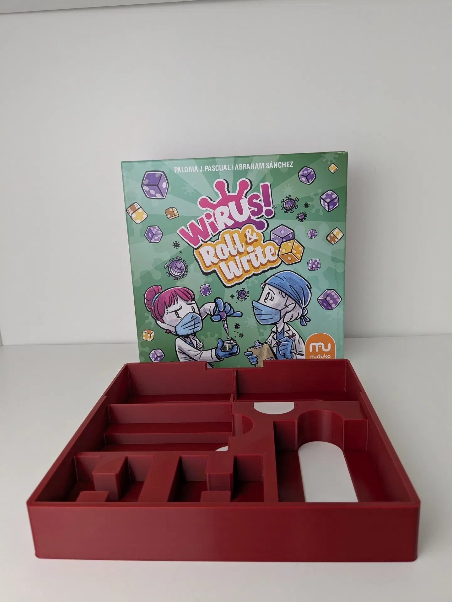 Insert một mảnh cho Virus! dùng chung Virus! 2, Halloween và Virus! Roll & Write, tối ưu cho bài bọc sleeve. Có ngăn riêng từng bộ, chỗ để bút chì và 4 hộc xúc xắc; gọn trong một hộp, in không cần supports.