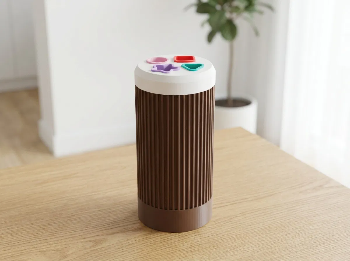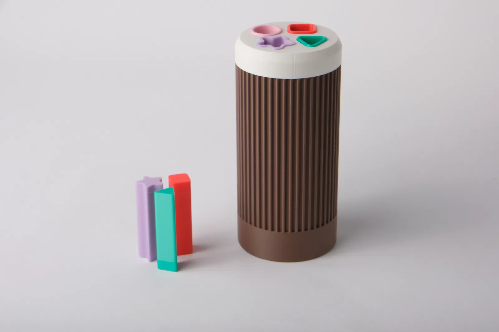 Đồ chơi phân loại hình khối mang tính giáo dục, được thiết kế để giúp bé học các hình dạng cơ bản, màu sắc và rèn phối hợp tay–mắt thông qua việc chơi. Mẫu sorter dạng hình trụ này có kiểu dáng sạch sẽ, hiện đại với nhiều lỗ hình khác nhau ở phần nắp, kèm các khối màu sắc tương ứng để thả vào bên trong. Hình học đơn giản nên bé cầm nắm dễ và hiểu cách chơi nhanh, từ đó khuyến khích khả năng giải quyết vấn đề, phát triển vận động tinh và tư duy không gian sớm. Thiết kế tối giản giúp đồ chơi nhìn dịu mắt nhưng vẫn cuốn hút, hợp với phòng chơi/không gian học tập phong cách hiện đại. Một món đồ chơi giáo dục vừa thực tế vừa vui nhộn, kết hợp học hỏi, khám phá và giải trí trong một form nhỏ gọn.