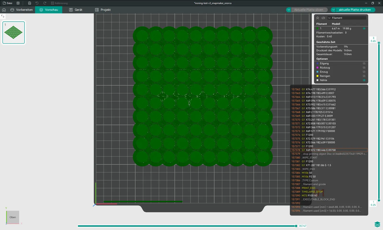 Bài test ủi bề mặt trên (Top Surface Ironing) - cho Snapmaker U1