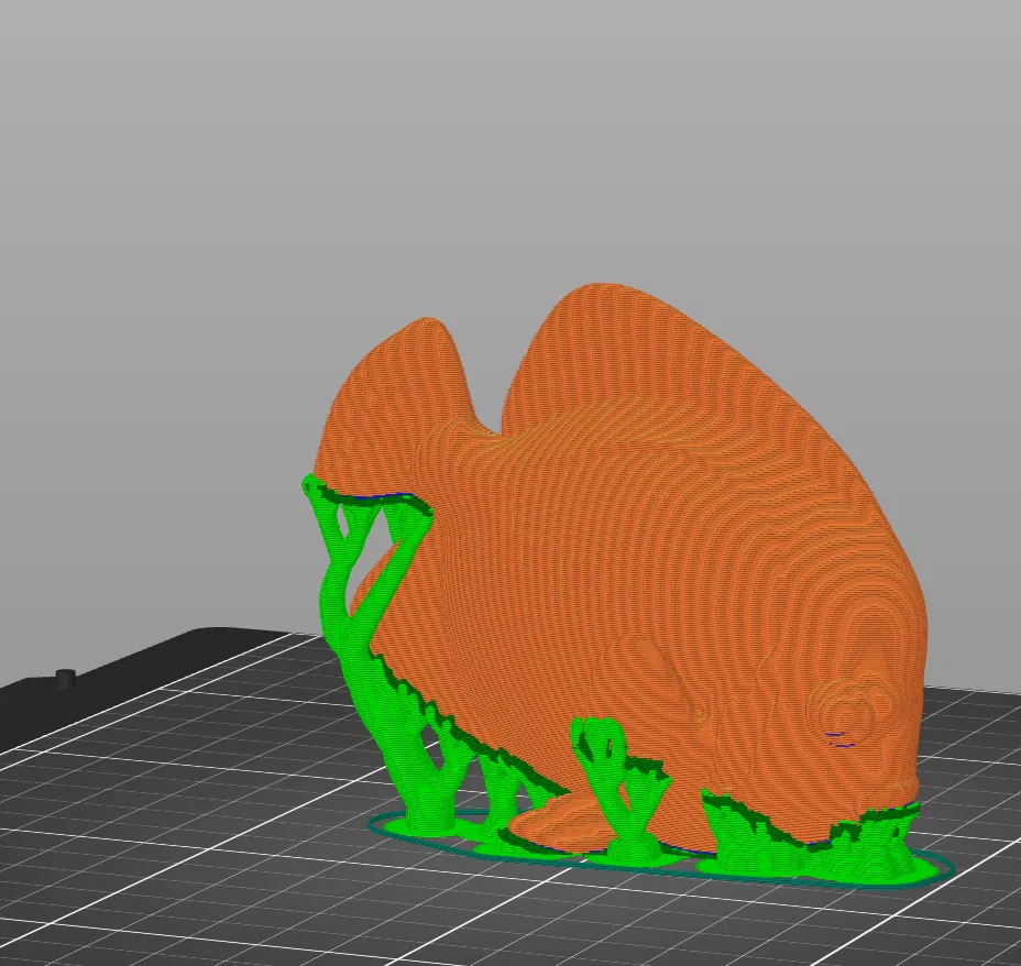 Các mẫu cần organic support ở phần bụng và vây hoặc đuôi, đồng thời chọn print orientation phù hợp. Bạn có thể cân nhắc dùng fuzzy skin (outside walls - thickness: 0.1, distance: 0.2)