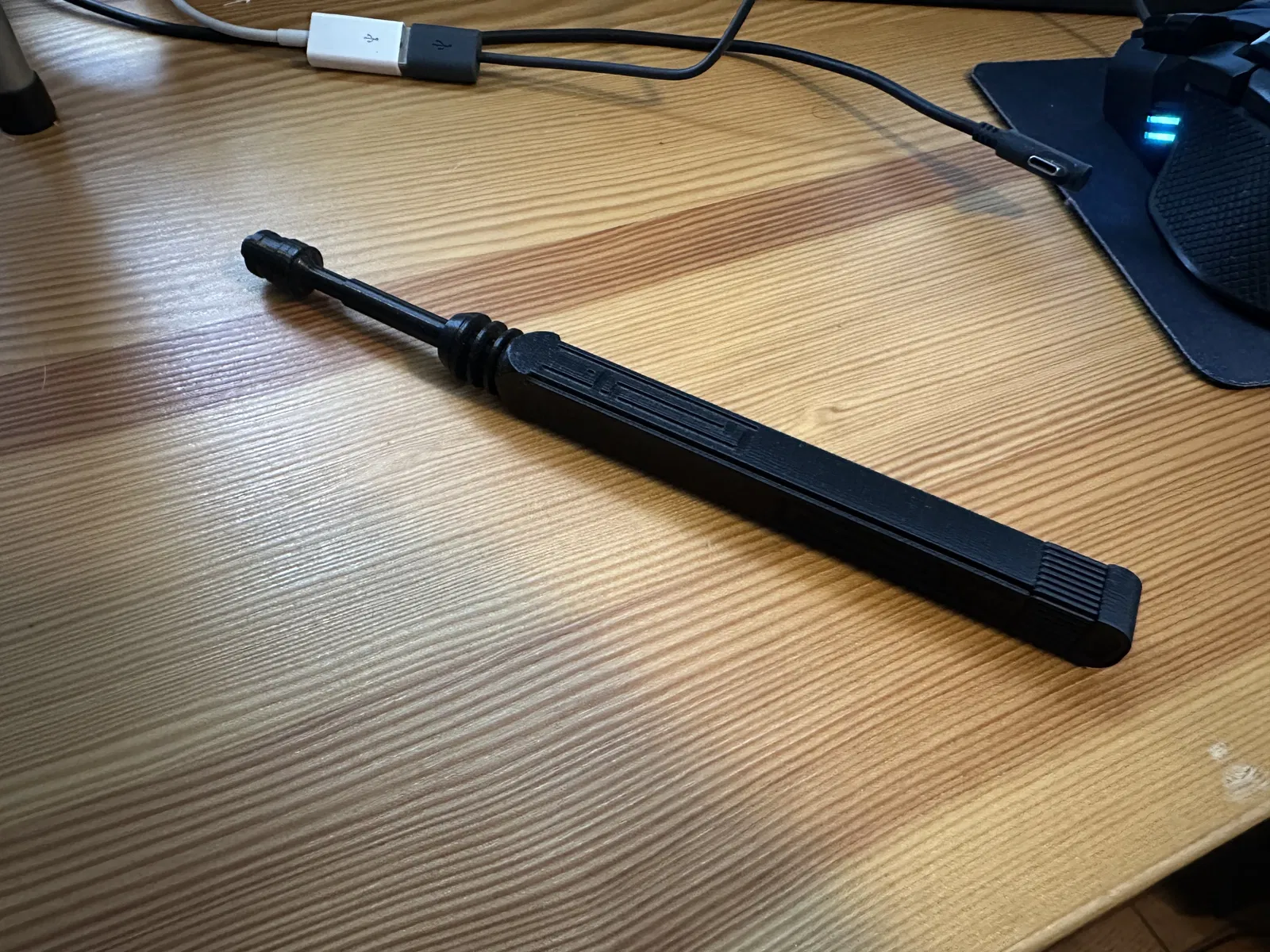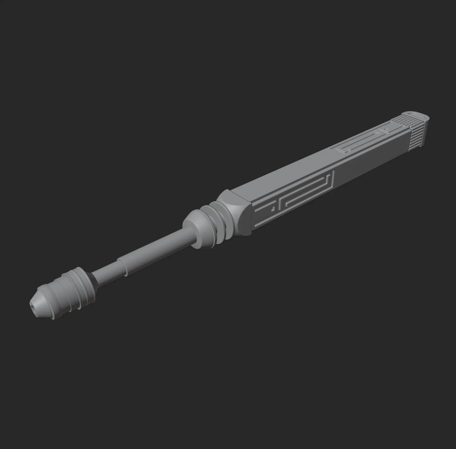 Data Spike của Kay Vess trong game Star Wars Outlaws. Mình dựng model dựa theo hình của món này trong phần inventory của Outlaws. Khi in ra thì dài khoảng 8 inch; mình chọn kích thước đó vì nhìn so với bàn tay của Kay lúc cô ấy rút nó ra khỏi tóc thì cỡ đó là hợp lý.