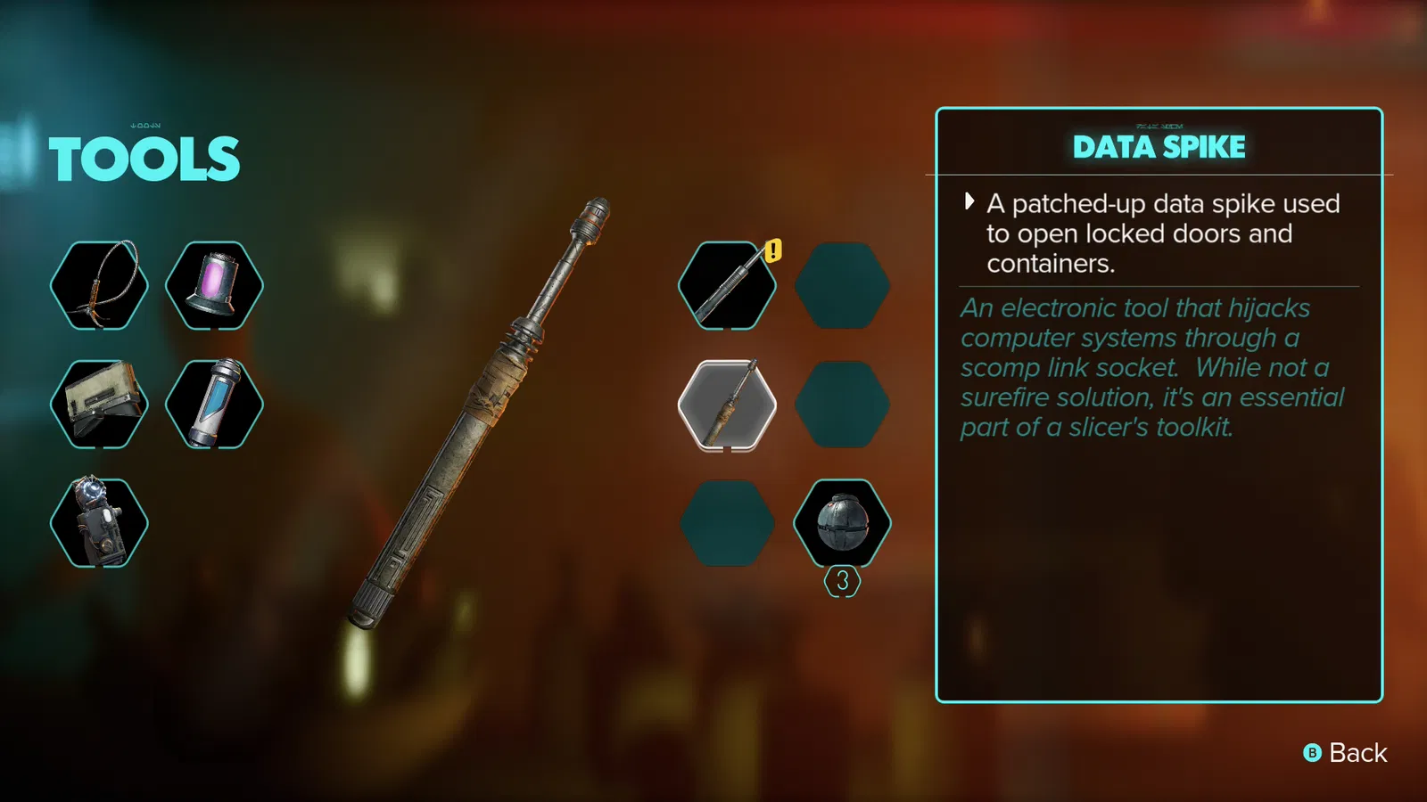 Model Data Spike của Kay Vess từ Star Wars Outlaws, dựng theo hình trong inventory. Bản in dài khoảng 8 inch để đúng tỷ lệ khi so với tay Kay. Các phần dán keo, riêng “turn piece” phải xoay có ma sát; “ring piece” in 2 cái.