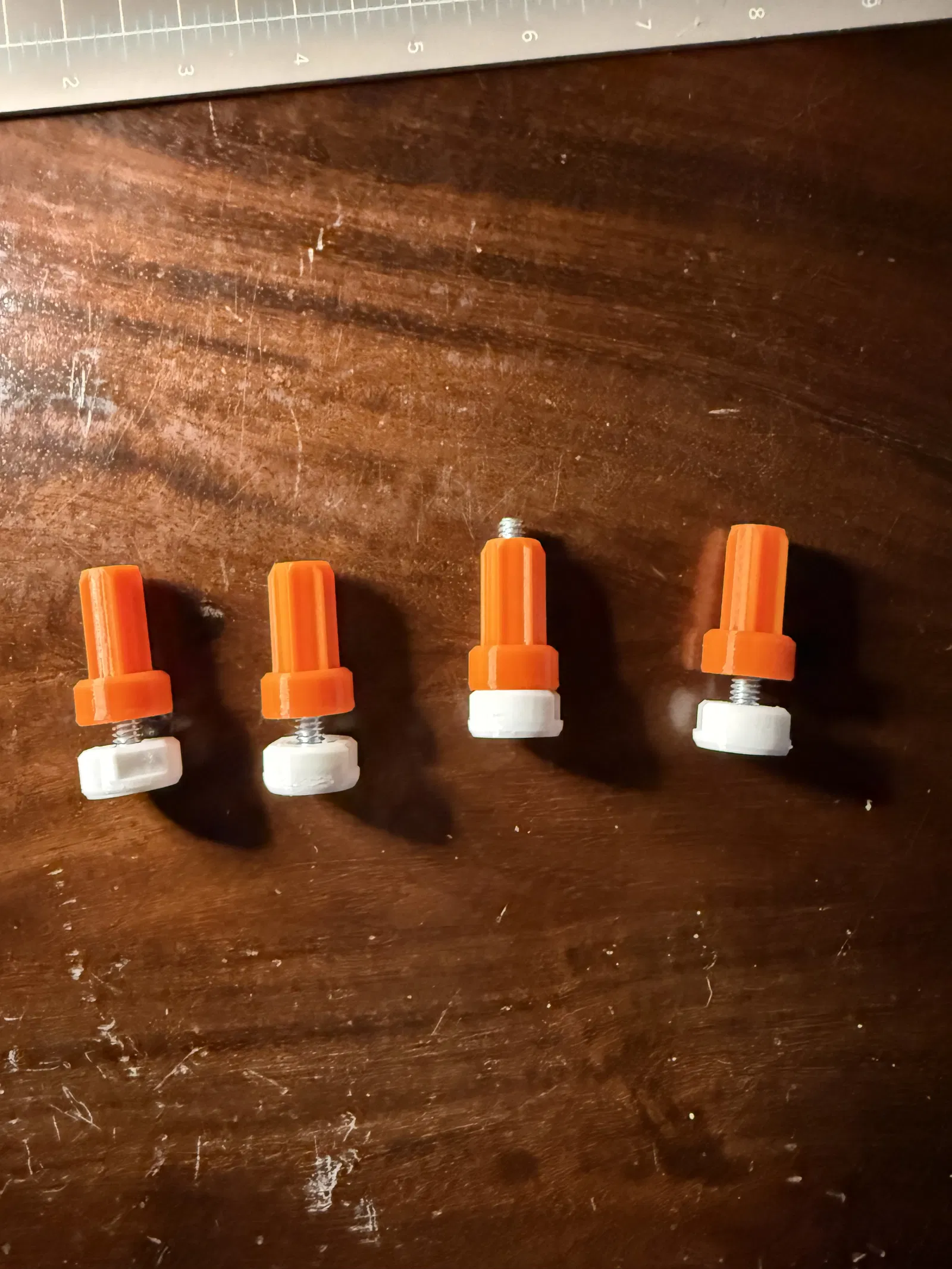 Mình cần vài cái chân tăng chỉnh để làm cái bàn phụ (end table) nên mình thiết kế mấy cái insert này dựa trên bu-lông đầu lục giác (hex bolt) 1/4” dài 1.25” và đai ốc (nut). Bạn có thể dùng bu-lông dài hơn hoặc ngắn hơn tùy ý. Bu-lông ngắn hơn 1" có thể sẽ không ổn. Để lắp chân, bạn cần khoan một hốc (recess) ở phần chân của món đồ nội thất. Mình cố gắng giữ phần lắp đặt đơn giản nhất có thể. Một bộ mũi khoan Forstner (forstner bits) có lẽ là lựa chọn tốt nhất để khoan cái hốc này.