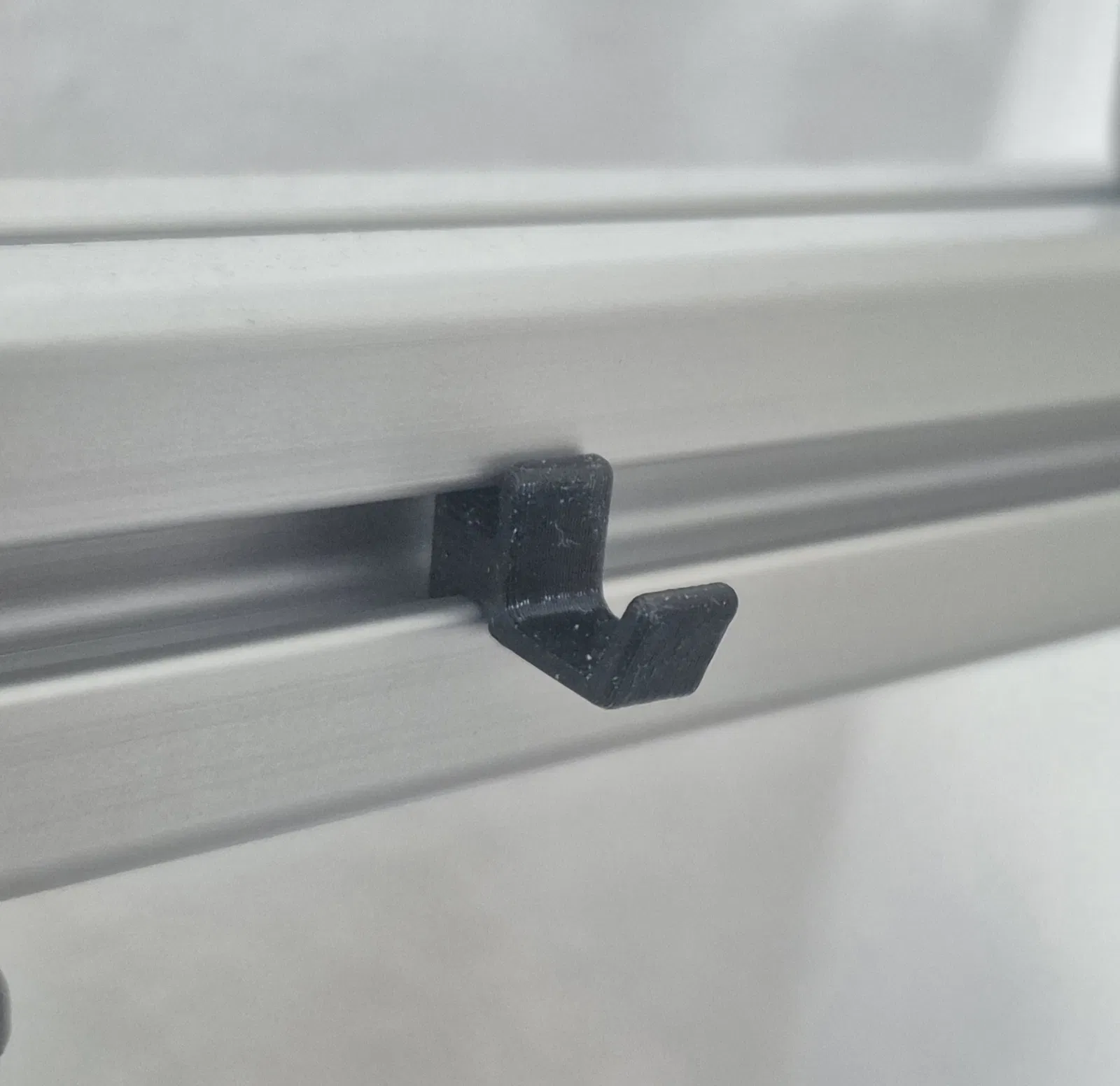 Lúc nào mình cũng bực vì muốn gắn mấy món đơn giản, nhỏ hoặc nhẹ lên profile extrusion mà phải kiếm đồ nghề riêng rồi còn phải tìm đúng loại vít cho hợp. Cái móc này giải quyết hết mấy vụ đó.