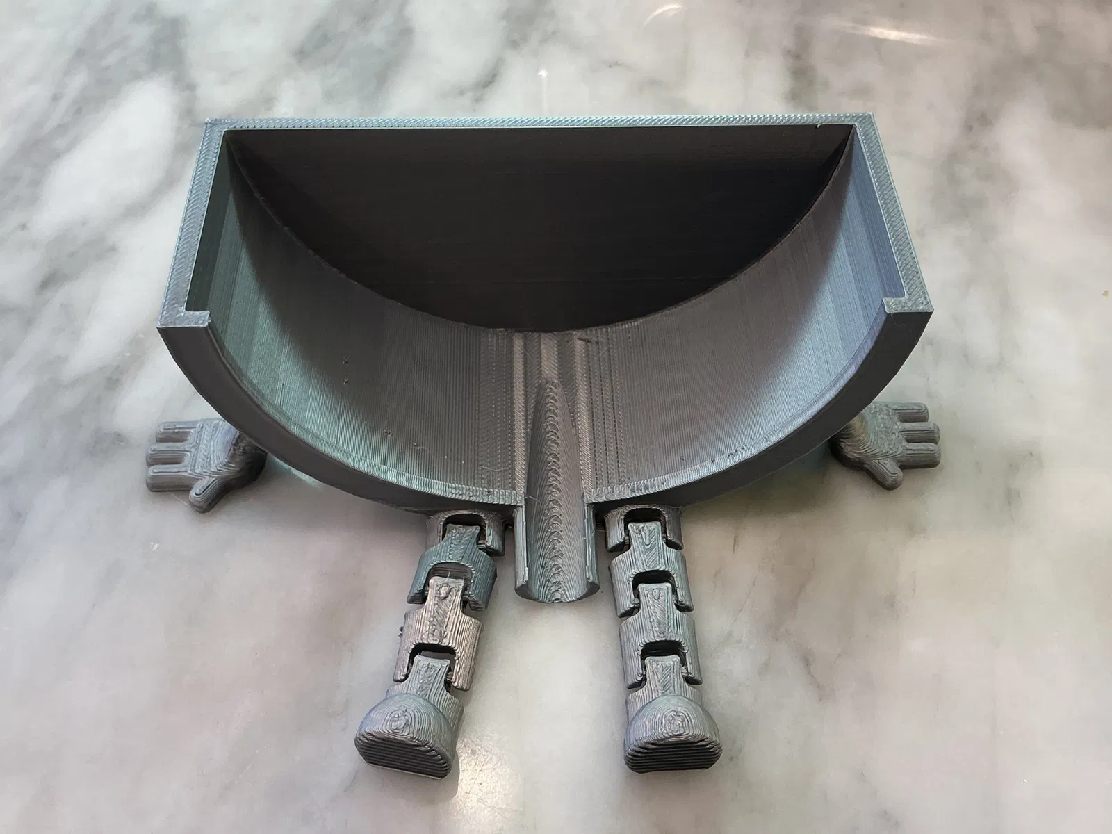 Kệ/giá để Scrub Daddy cho bồn rửa dạng print-in-place có khớp, thiết kế để in FDM dễ dàng, không cần supports. In khoảng 2.5 giờ và dùng tầm 45 gram filament. Chân khớp gác lên mép bồn rửa, tay đỡ miếng bọt biển, và có cổng thoát nước tích hợp để nước nhỏ thẳng lại vào bồn, giúp khô nhanh hơn.
