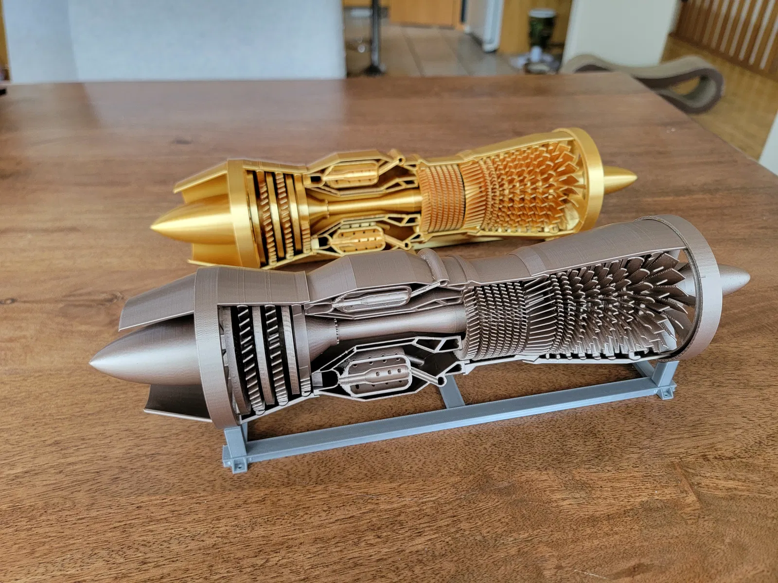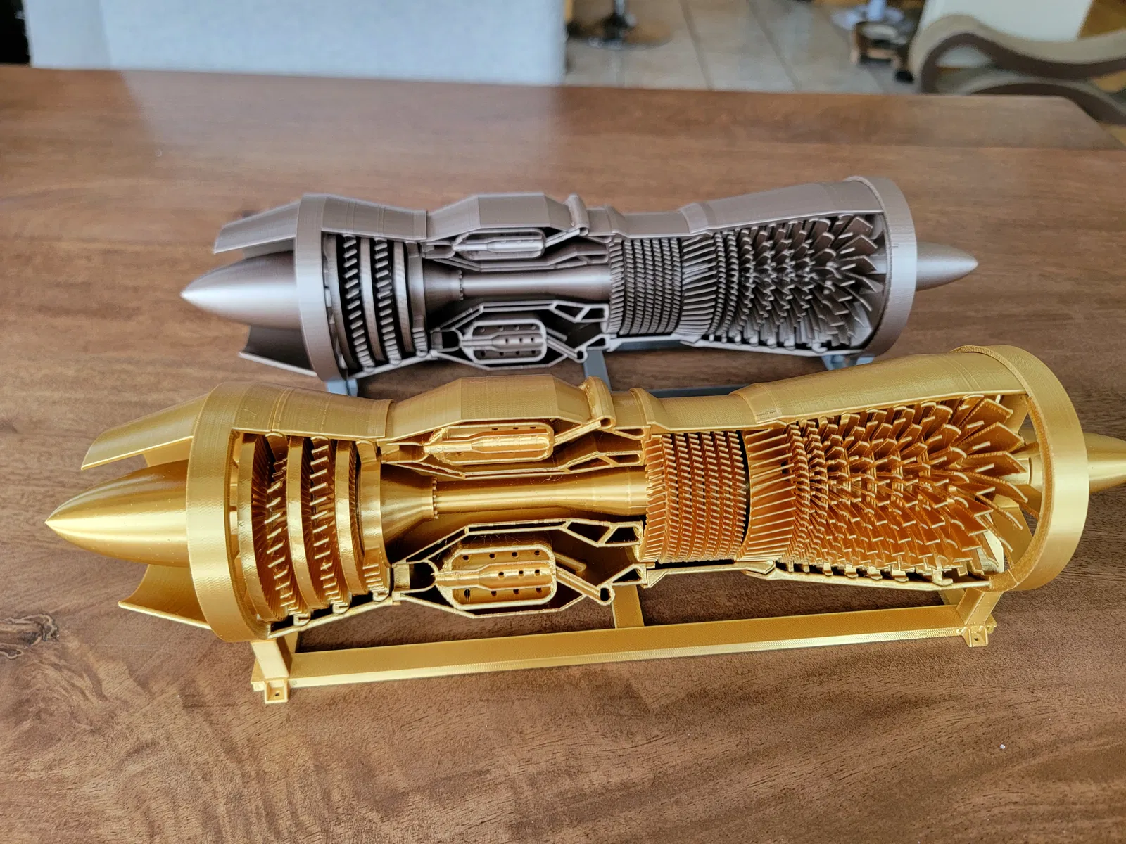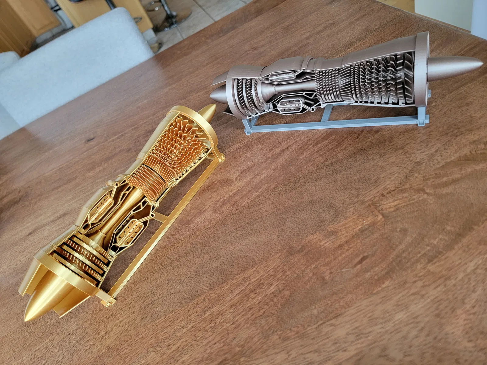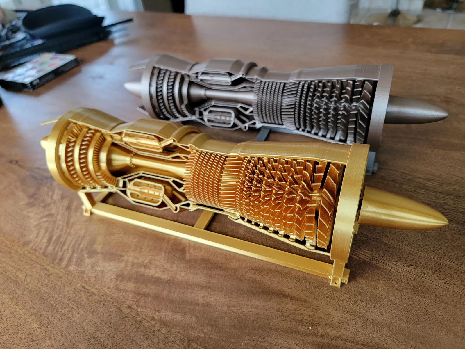 Bạn xem file PDF manual để biết hướng dẫn lắp ráp nha. Mình làm mẫu này vui thiệt sự. Mẫu được in với nozzle 0.4mm và layer height 0.2mm. Phần combustion chamber cần supports, còn những phần khác thì in không cần. Mình thấy dùng brim rất hữu ích — quan trọng là các fan và stators không bị biến dạng, nếu không fan sẽ không quay trơn và sẽ có tiếng cạ/grinding.