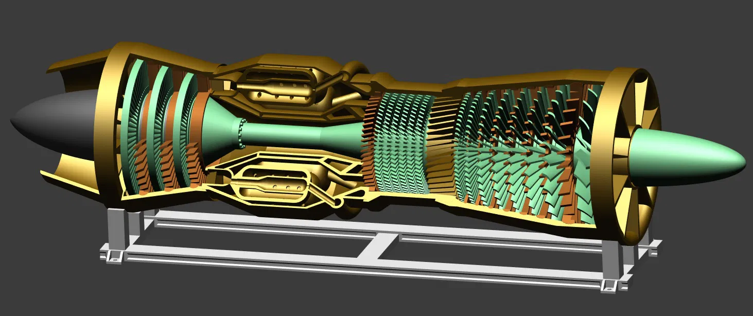 Mình cũng nói trước là phần buồng đốt (combustion chamber) mình có “biến tấu” chút và đơn giản hóa vài thứ. Mình đã lược bỏ các stators ở phần high pressure của turbojet.