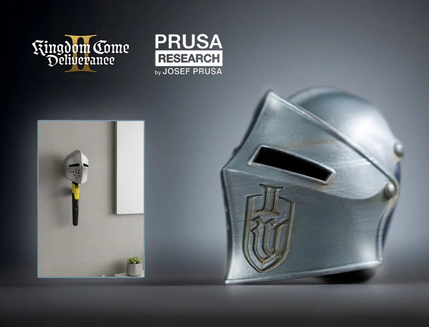 Lên giáp thôi. Tụi mình xin giới thiệu giá treo tường hình mũ giáp, thiết kế riêng cho Philips OneBlade Kingdom Come: Deliverance II Limited Edition.