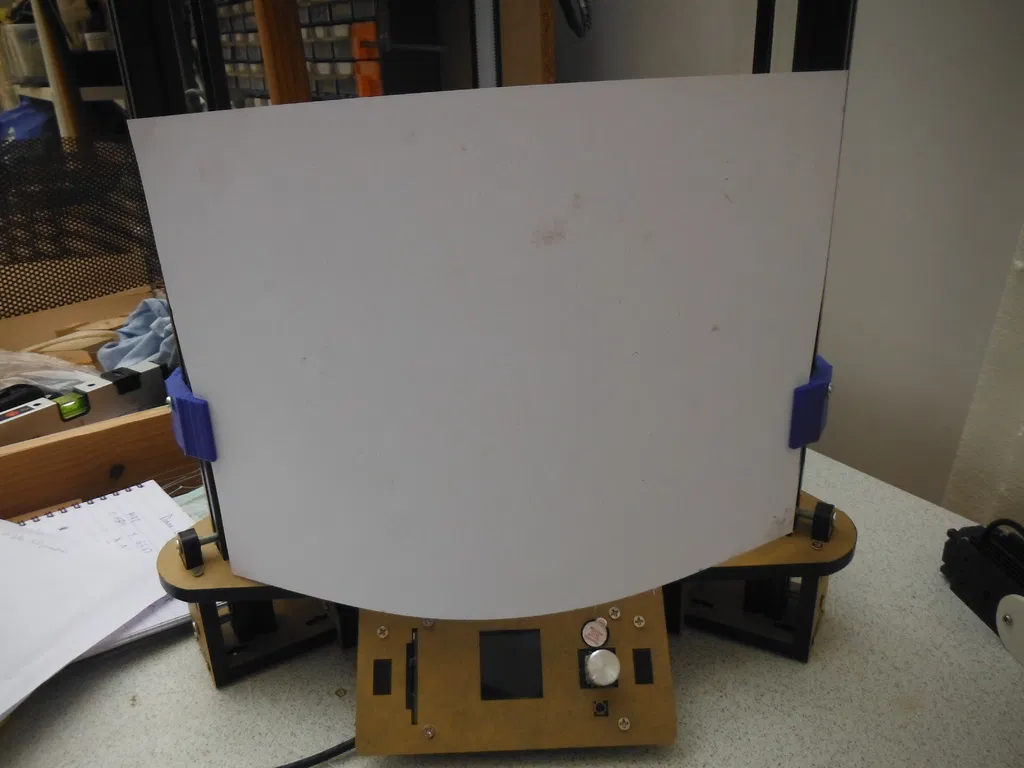 Mình tự thưởng cho bản thân một con máy in delta có kèm laser để khắc. Mình muốn có một cái chắn để khỏi nhìn thẳng vào ánh sáng chói; mẫu này đơn giản mà hiệu quả, giúp mình khỏi phải đeo kính bảo hộ khi khắc tầm 30 phút. Mình cũng đã dời máy in xuống khu tiện ích để khỏi làm báo động khói kêu.
