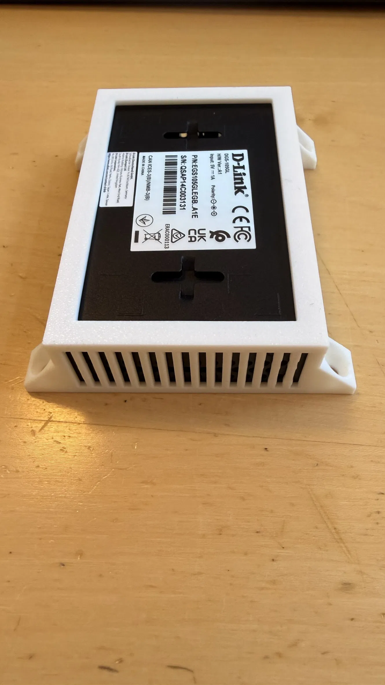 Giá treo dưới bàn thiết kế riêng cho D-Link DGS-105GL, giúp cố định switch gọn gàng dưới mặt bàn để giảm bừa bộn, dễ đi dây và tránh va quẹt. In không cần support, vẫn đảm bảo airflow và dễ cắm/rút cáp.