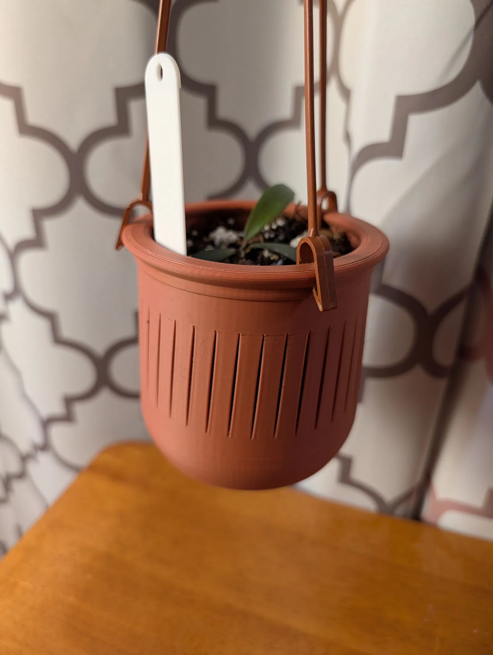 Chậu cây treo 3.75 inch The Lynn với phần vành rộng dễ móc plant hanger. Tối ưu cho Bambu Labs/Orca slicer, có khe thoáng khí, lỗ thoát nước lớn và reservoir cup tích hợp giúp giữ ẩm lâu, hỗ trợ rễ phát triển xuống đáy.