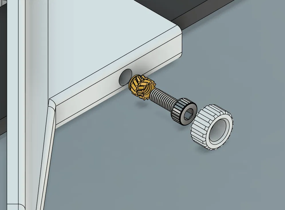 Khi lắp ráp cần 1 M3 heat insert và 1 ốc M3 x 10mm Hex Cap Screw.