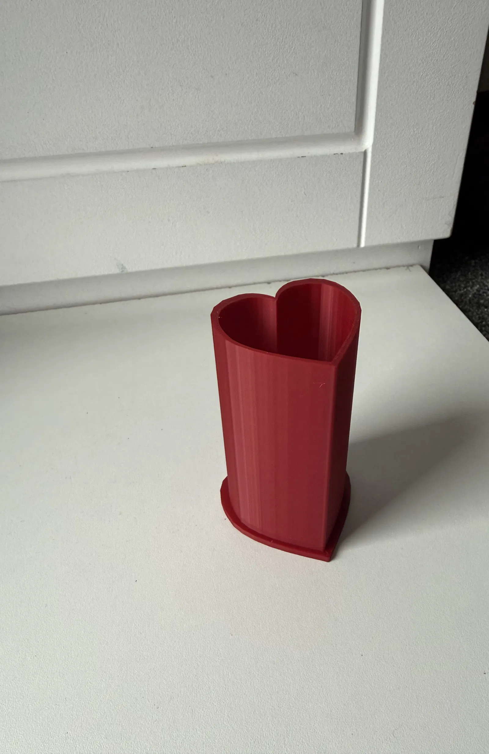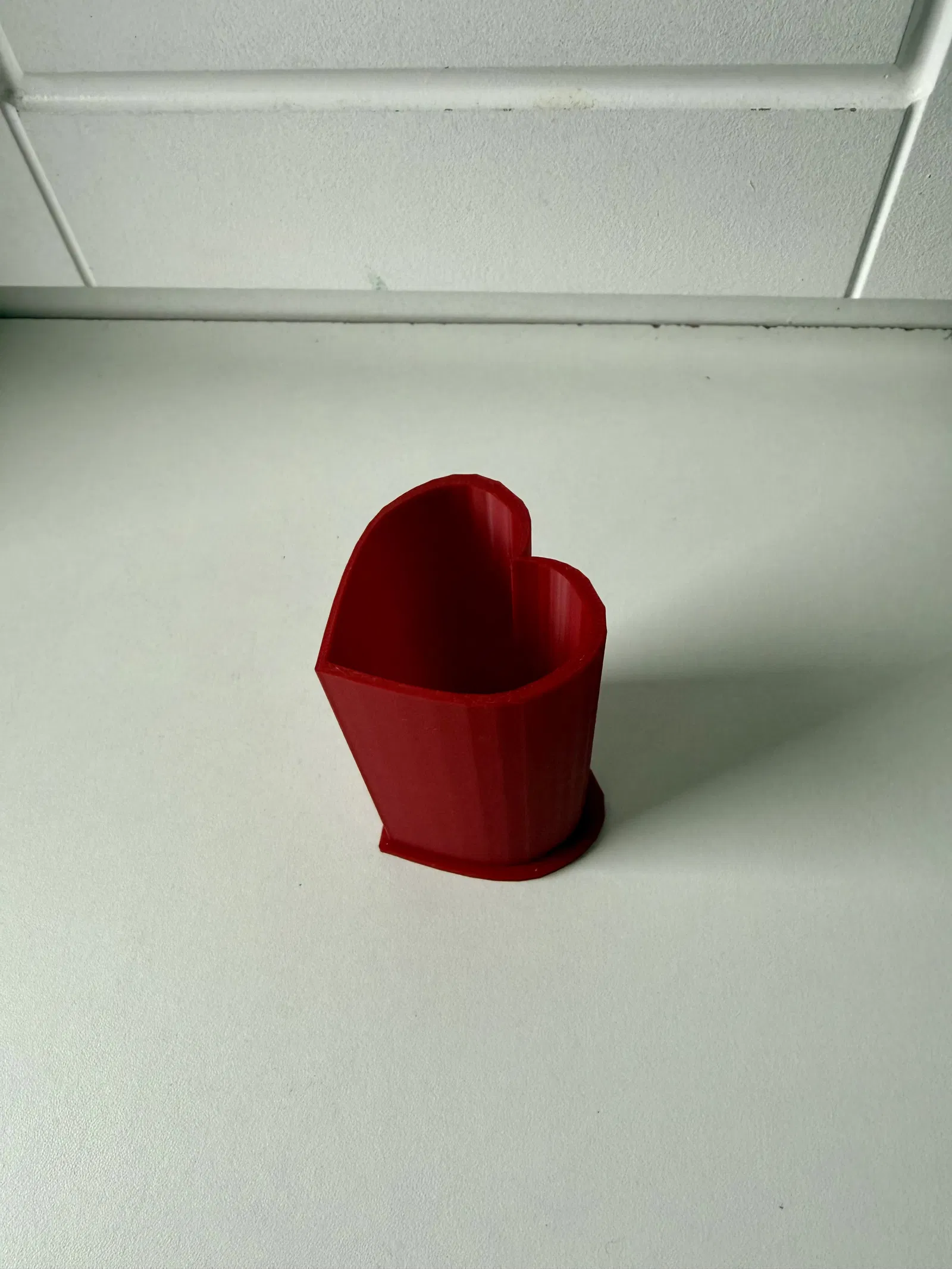 Đây là một mẫu bình hoa hình trái tim đơn giản, kích thước 6cm x 6cm và cao 10cm, dễ in. Bạn có thể resize nếu cần. Không bao gồm hoa.