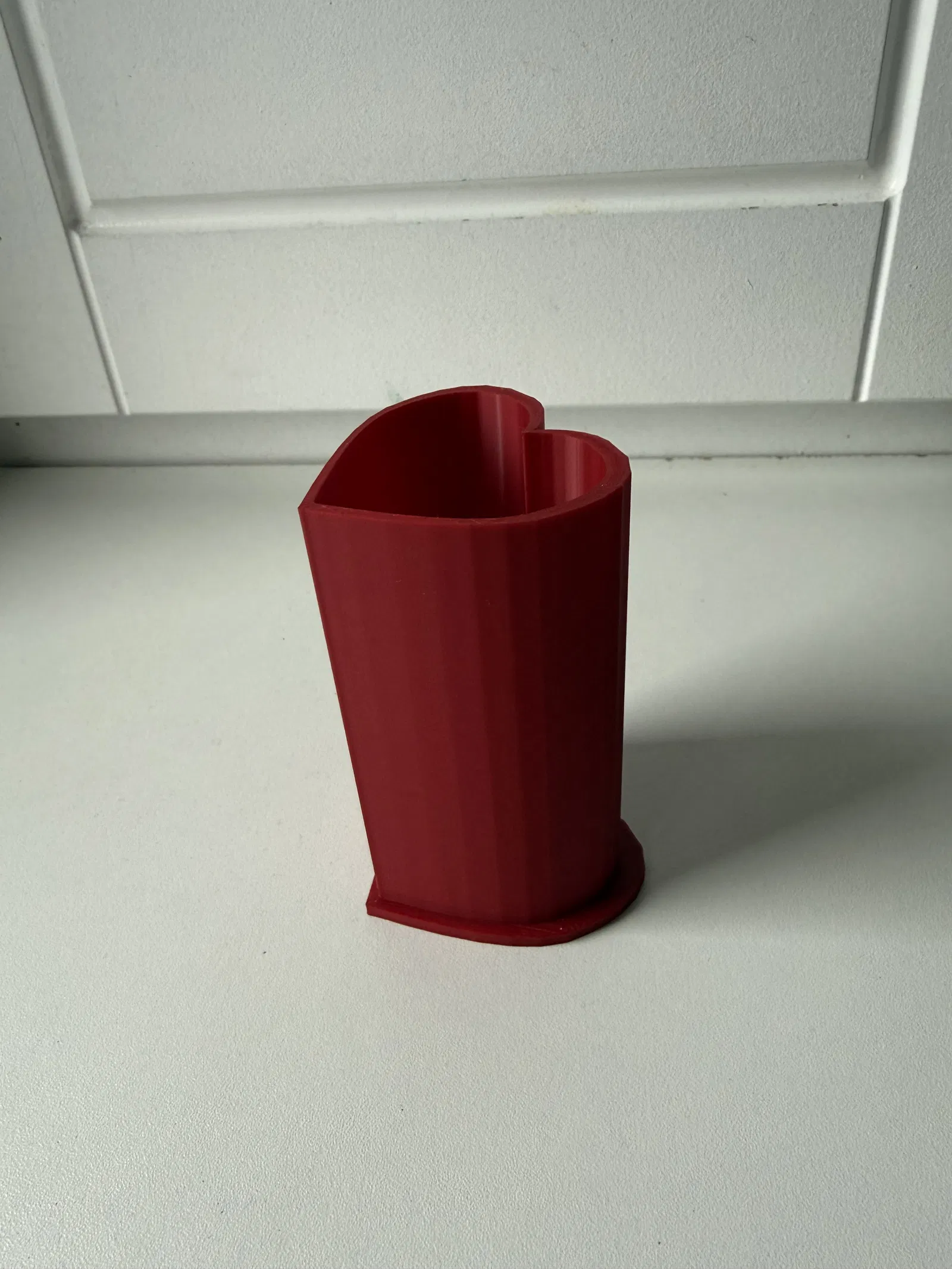 Mẫu bình hoa hình trái tim đơn giản, kích thước 6cm x 6cm, cao 10cm. Dễ in 3D và có thể resize theo nhu cầu trưng bày ở phòng ngủ, phòng học, nhà tắm hay bếp. Lưu ý: không kèm hoa.