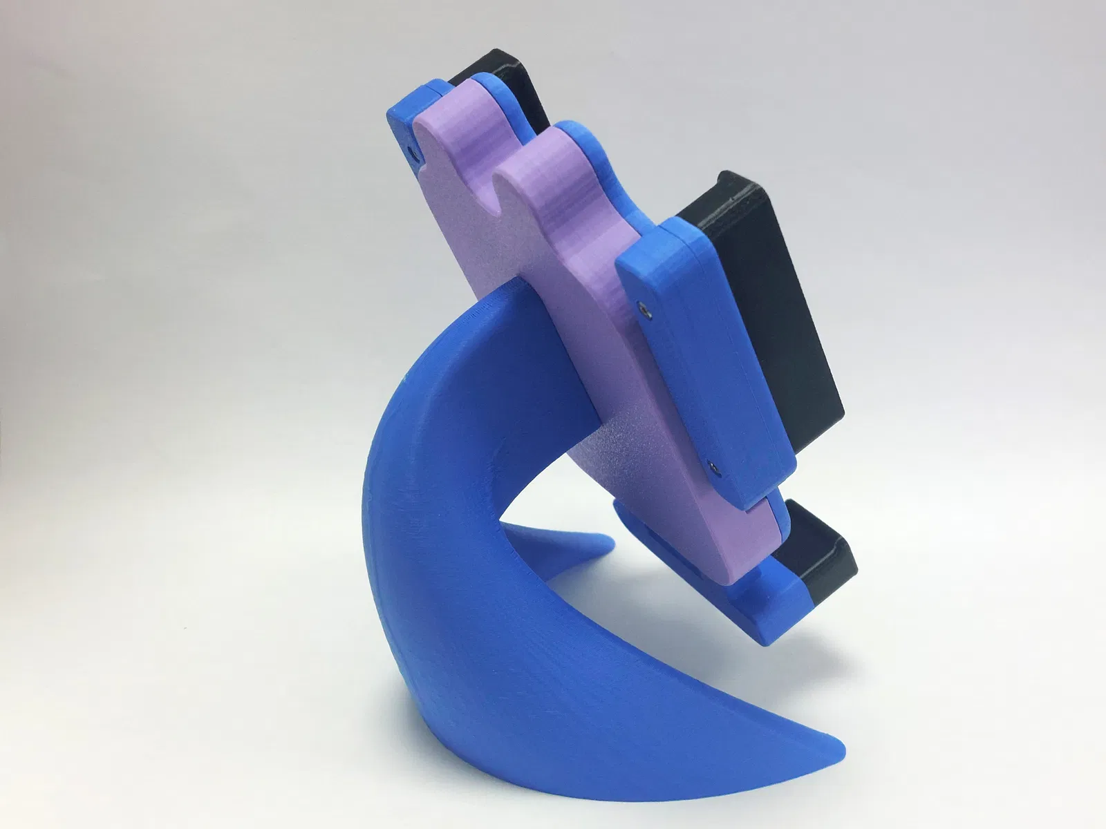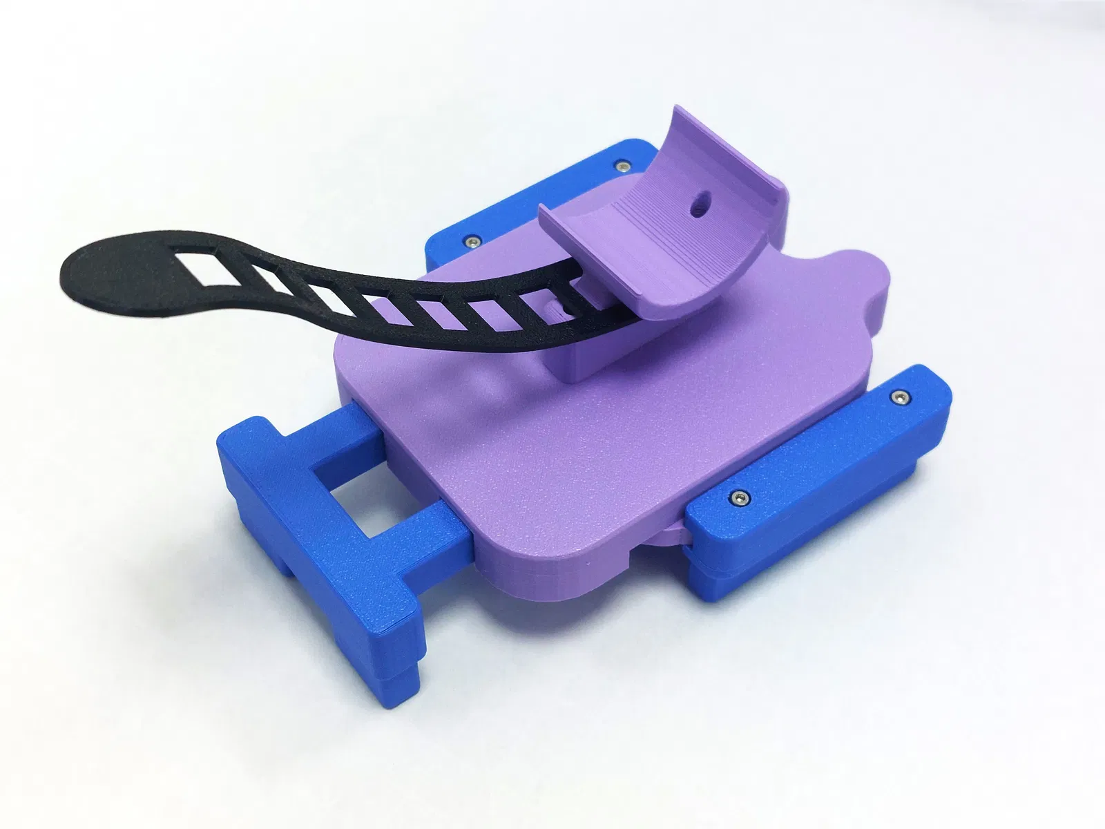 Mình thiết kế kẹp điện thoại này để không chỉ có trọng lực hỗ trợ, mà còn có cơ chế lò xo kèm các miếng kẹp TPU để giữ điện thoại chắc hơn và hạn chế bị bật ra.