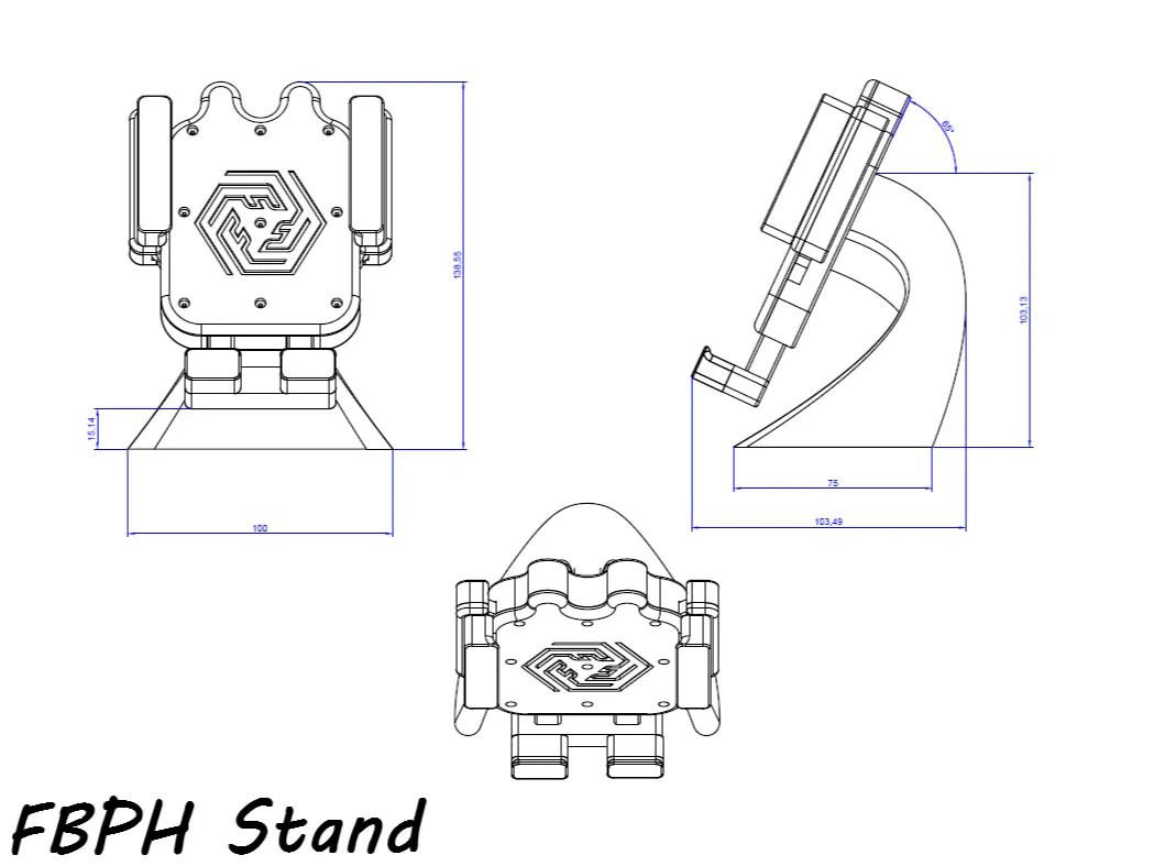 Phần stand hiện đang thiết kế cho điện thoại rộng từ 71mm đến 94mm, nhưng có thể chỉnh sửa dễ dàng để phù hợp máy lớn/nhỏ hơn bằng cách thay các miếng grip (tuỳ chọn grip sẽ có sớm!).