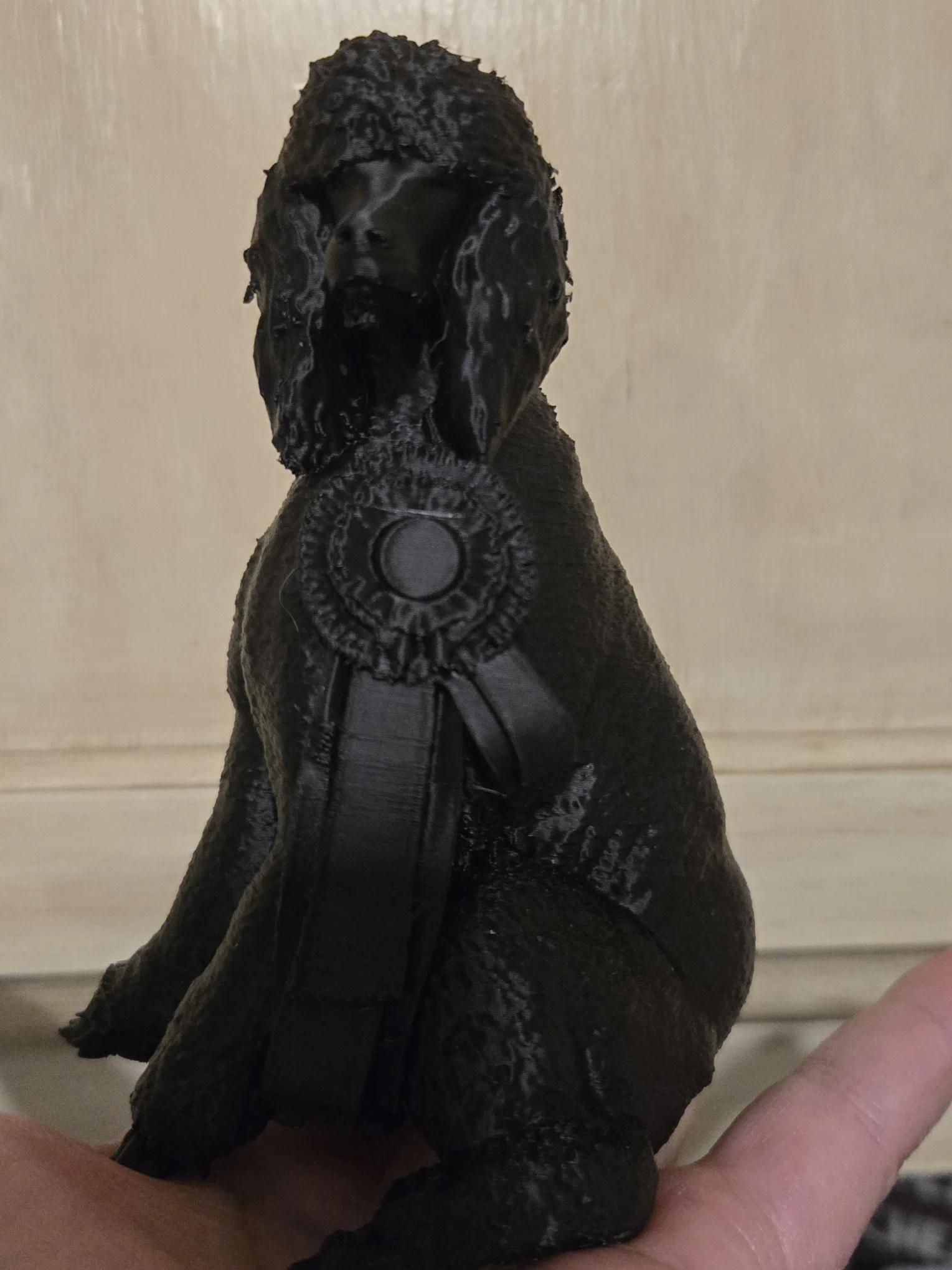 Champion Poodle là mẫu điêu khắc chó Poodle với chi tiết ruy băng trên đầu. Bạn có thể giữ lại để tăng điểm nhấn hoặc tháo ra nếu muốn kiểu dáng đơn giản hơn khi in.