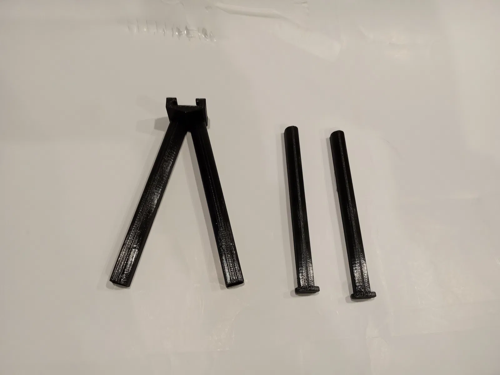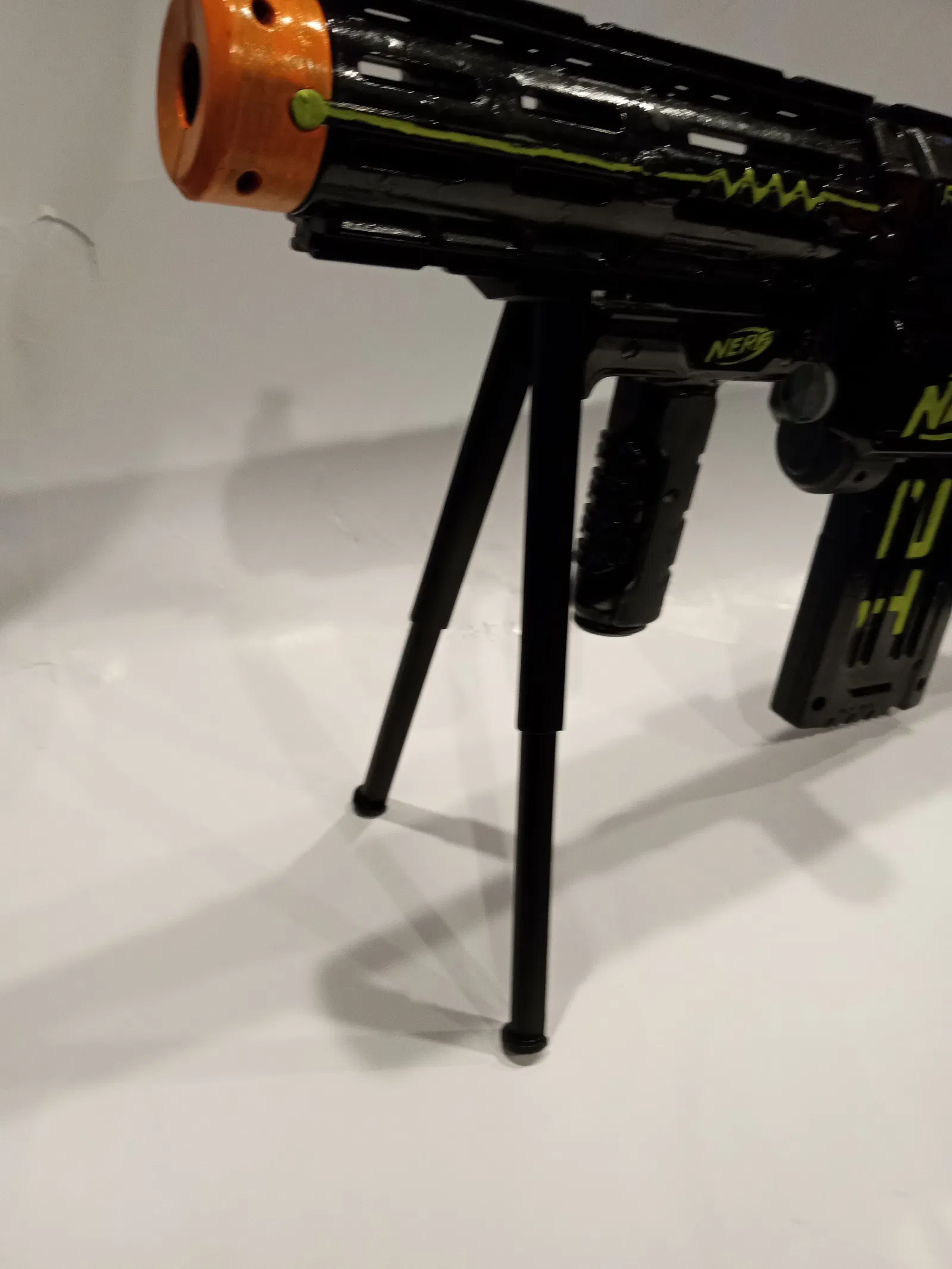 Chân chống (bipod) đơn giản gồm 3 phần cho các blaster Nerf! Chỉ cần lắp 2 chân vào phần thân chính, hoặc dùng riêng phần thân chính như một bipod thấp. In 1 phần thân chính và 2 chân. Nên vừa với tất cả Nerf rail.