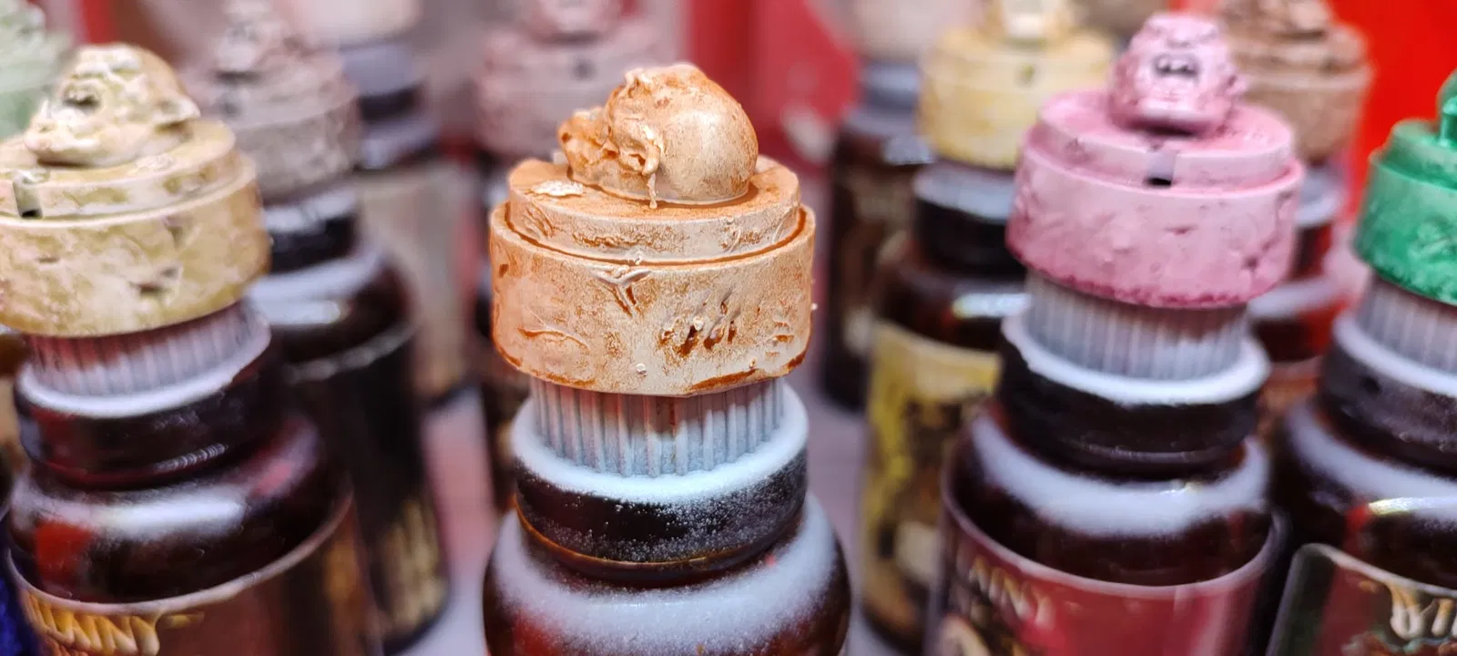 Model Villainy Ink Bottle Cap Swatch: thẻ swatch gắn nắp chai cho Villainy Ink enamels (GrimdarkCompedium). Fit rất sát; nếu in FDM bị elephant foot nên scale +5–10%. In resin có thể hơ nóng rồi ép vào, khỏi cần keo.