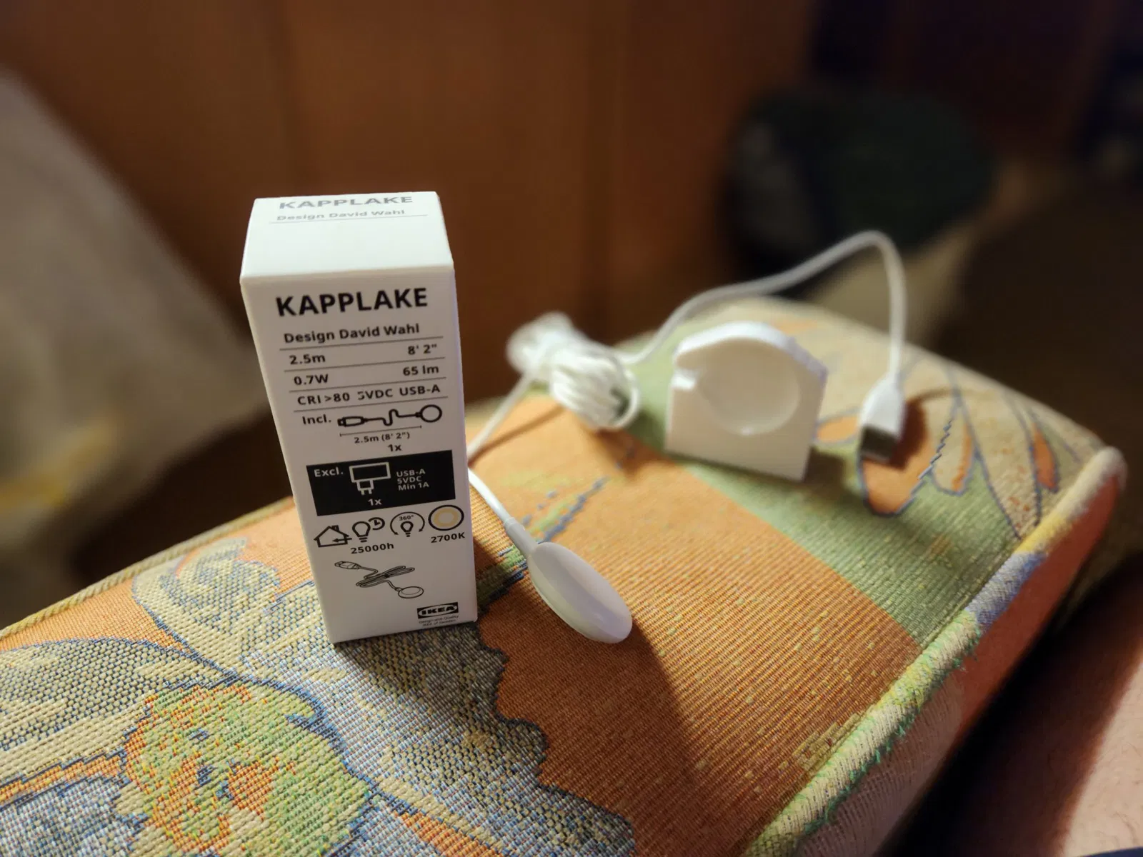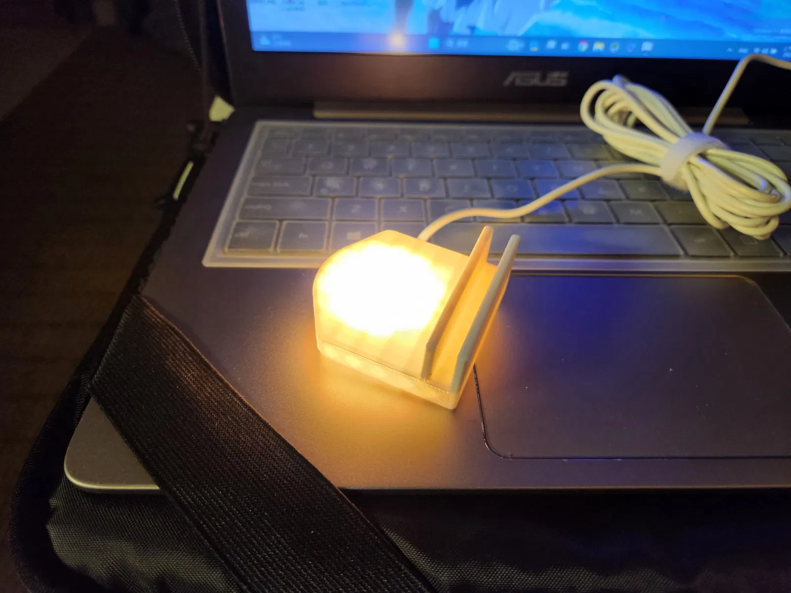 Một đèn LED (đèn IKEA KAPPLAKE) được giữ bởi cái kẹp này và nó có thể giữ trên màn hình laptop.