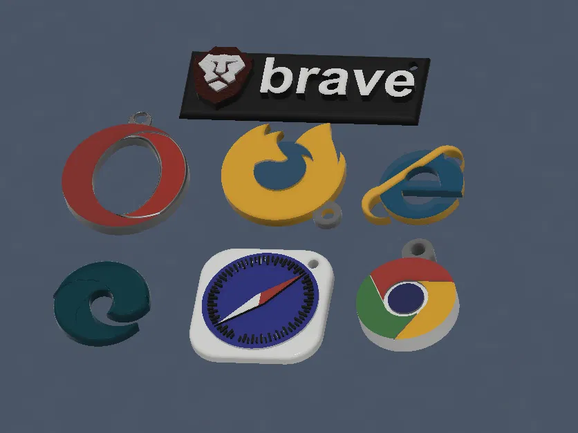 Mẫu móc khóa Browser keychain, gồm các phím (key) đại diện cho những trình duyệt OG và cả các trình duyệt mới nhất. Phù hợp để in 3D làm phụ kiện treo chìa khóa hoặc trang trí.
