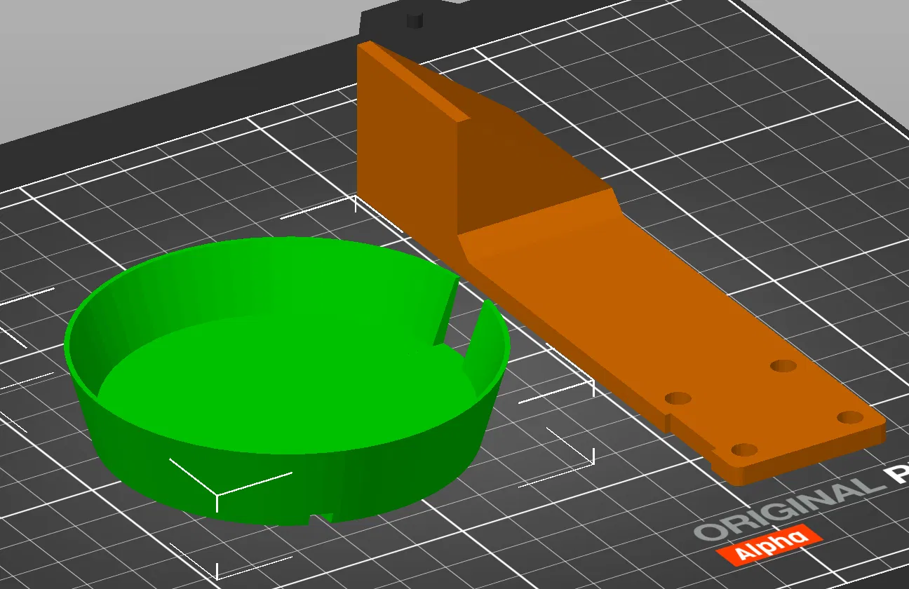 Dùng 4 con ốc ở mặt trước-bên trái của MK4 để gắn camera. In 2 phần rồi bấm khớp lại với nhau (có thể chấm thêm chút keo superglue cho chắc). Có sẵn lỗ luồn dây nguồn của camera.