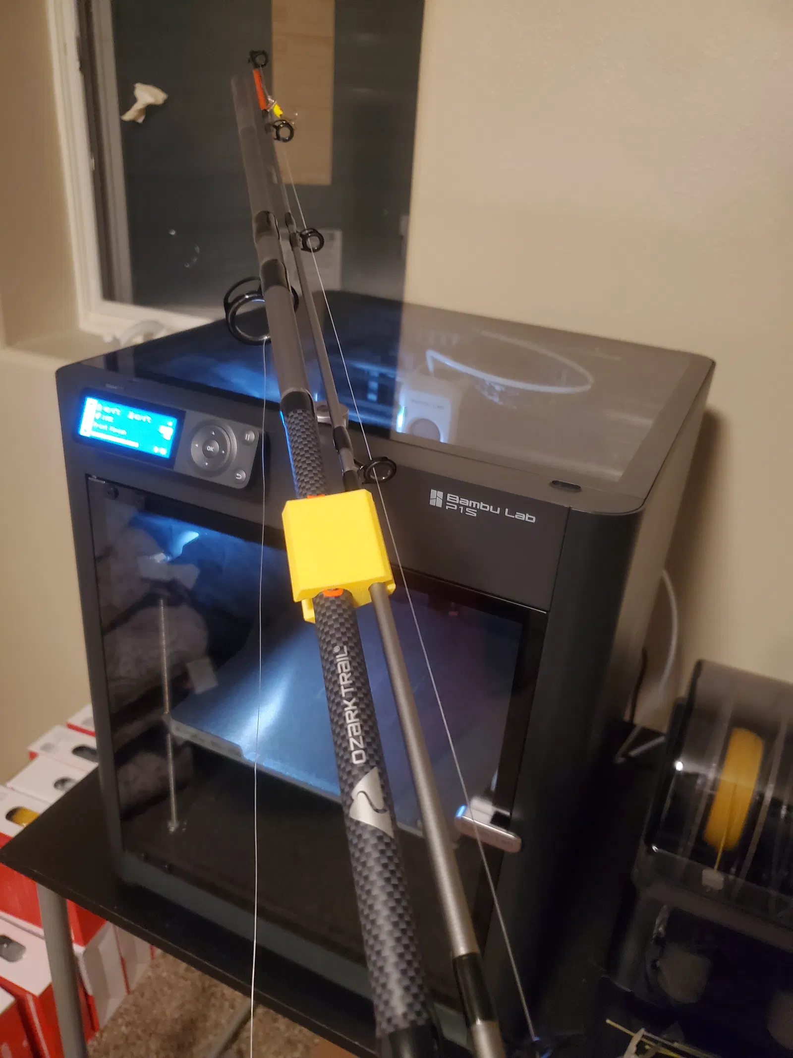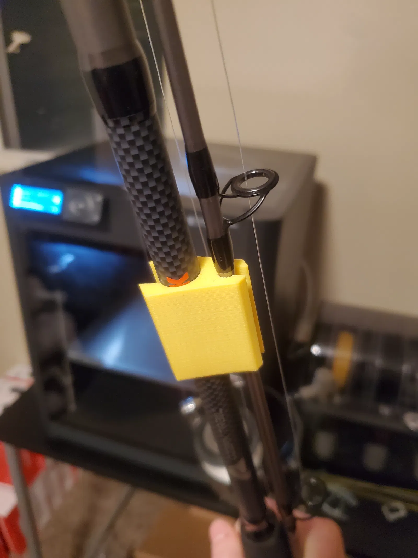 Nhớ đo đường kính cần câu của bạn trước khi in và chỉnh kích thước cho phù hợp nếu cần. Mẫu này được in bằng PLA nhưng có thể sẽ tốt hơn nếu in bằng nhựa dẻo (flexible plastic).