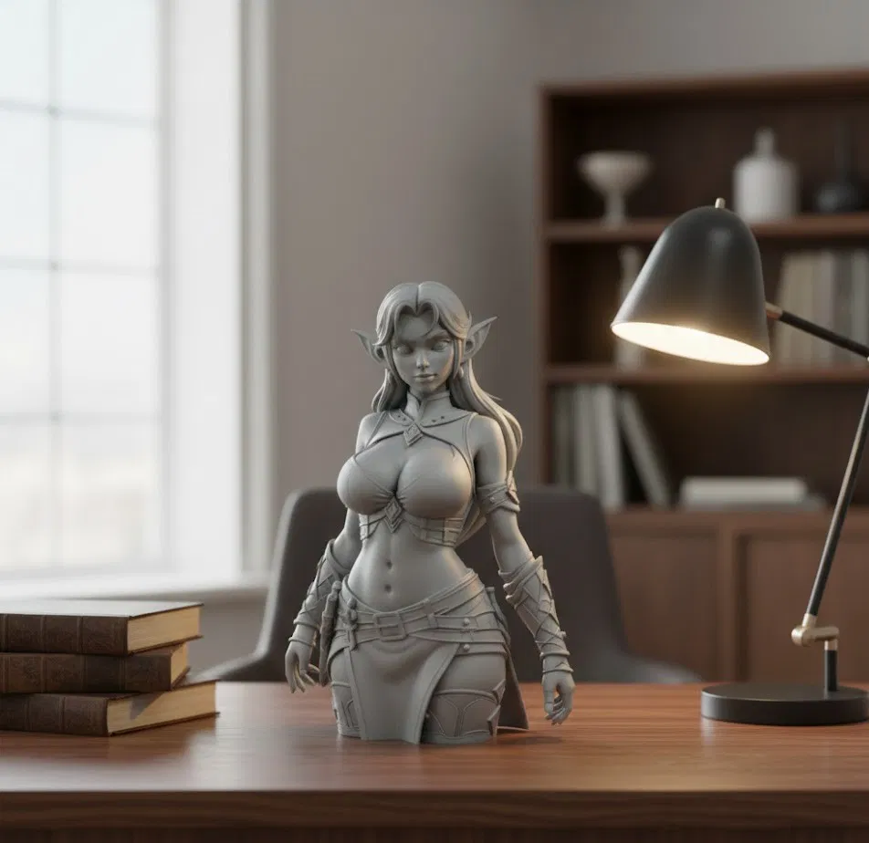 Mẫu “elf adventurer” là nhân vật nữ elf phong cách phiêu lưu, phù hợp để in 3D làm figurine/trang trí hoặc trưng bày theo chủ đề game, cosplay, Halloween. Thích hợp cho ai mê kiểu tượng nữ elf vừa dễ thương vừa quyến rũ.