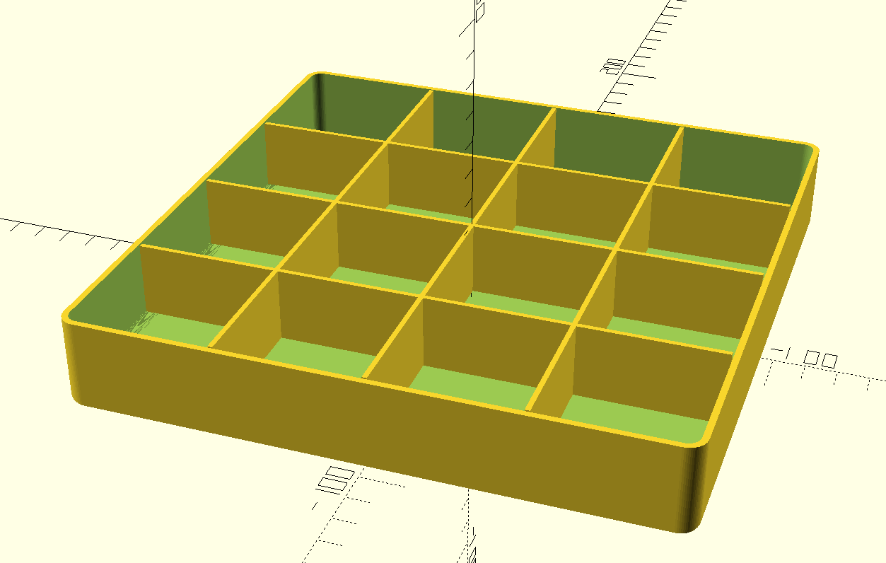 Mẫu hộp lưu trữ dạng parametric có bản lề, nắp snap-fit và insert đi kèm, có thể tùy biến bằng SCAD. Nếu cần hình dung thiết kế tổng thể của hộp, vui lòng xem mẫu gốc để đối chiếu.