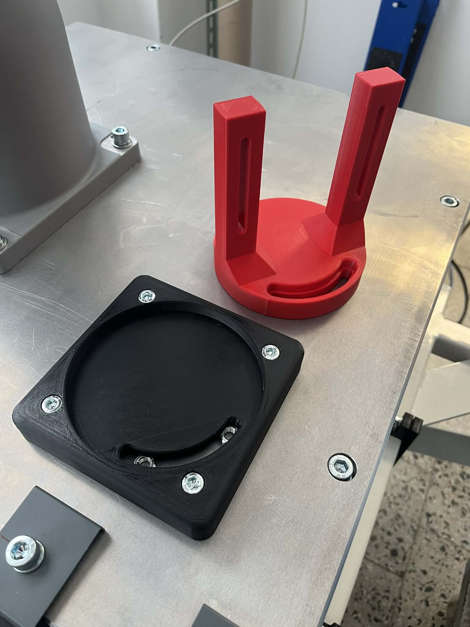 Ngàm xoay có thể chỉnh tối đa 90° dành cho camera công nghiệp hoặc các thiết bị khác dùng chuẩn lỗ bắt M5 (tối đa 70 × 98 mm). Phần đế và chính ngàm được siết cố định bằng bu lông M8. Khoảng cách lỗ bu lông M8 trên tấm đế là 100×100 mm.