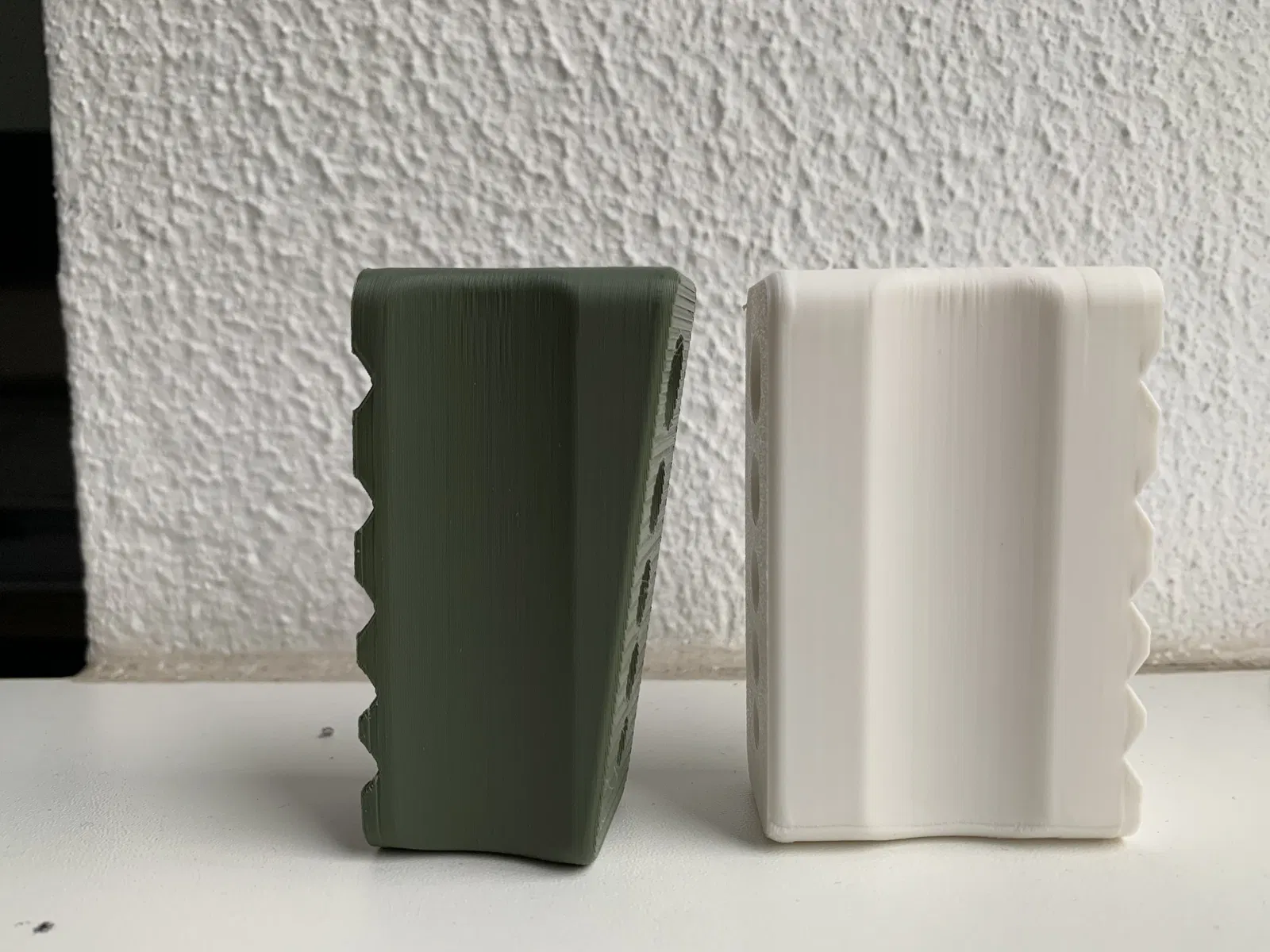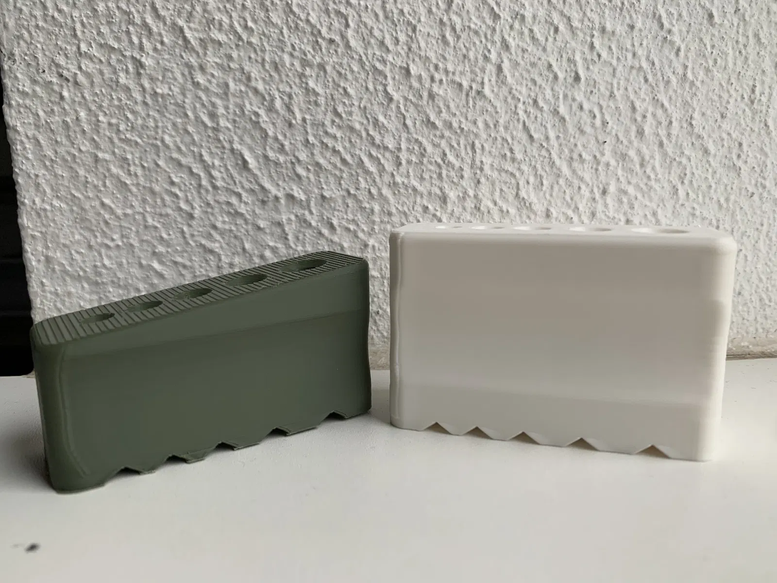 Tất cả đường kính lỗ đều được cộng thêm dung sai 0,5 mm. Bản in được thiết lập 3 walls. Phiên bản V1.1 phù hợp hơn cho mũi khoan ngắn hoặc khi cần khoan lỗ sâu hơn.