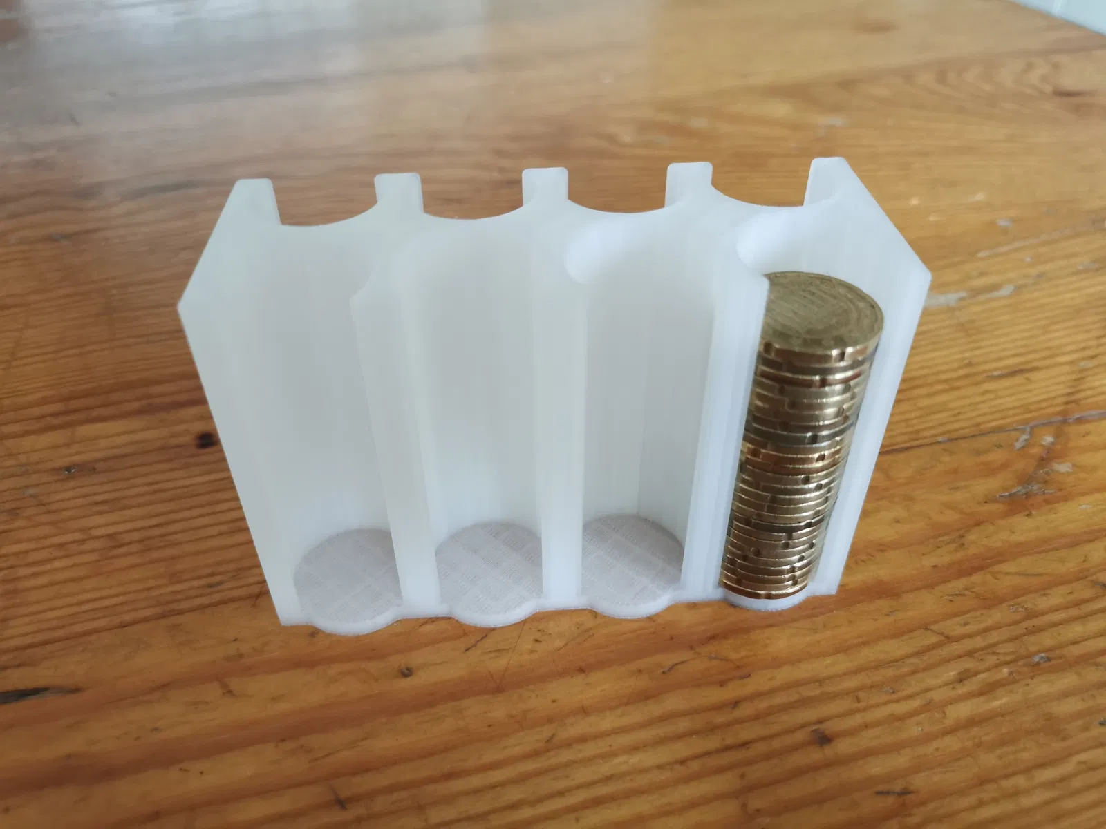 Khay sắp xếp đồng xu euro dành riêng cho 10 cents và 20 cents. Thiết kế có 4 ngăn cho mỗi loại (20c và 10c), in 3D được không cần support, gọn gàng và dễ dùng.